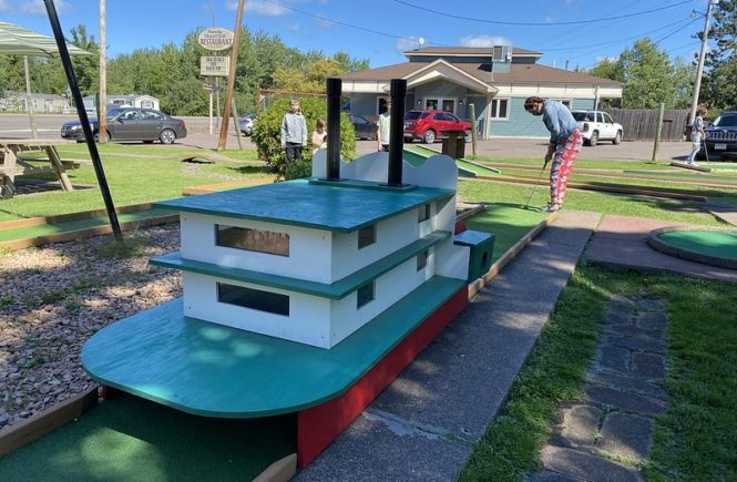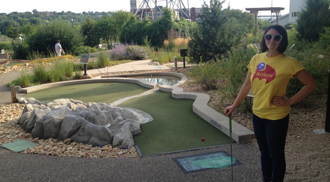 Hole-in-one: This course is top notch- if you can get there. Giggle Ridge Adventure Golf was designed and constructed by Dan Sawatzky over at The Imagination Corporation. Dan took us out to play this course during his Sign Magic Workshop that I attended. He showed off his techniques and reinforced the idea of telling a story through a themed environment. This course tells the story of the Giggle Ridge mining company and the detail and props at each hole successfully add to the narrative. Plus a fun play!