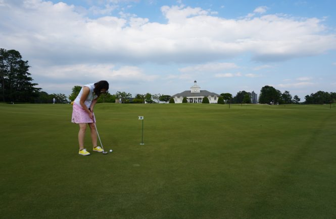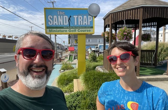 Par – This course majorly lacked personality, aside from its underlying themes of patriotism (as seen through banners and American flags). With no color or kitsch, it’s hard for me to get really excited about my experience. But despite its lackluster visual appeal, the Links’ standout quality was its wide variety of play. It had all the classic obstacles: rocks, faux sand traps (brown turf instead of real sand), bridges, jumps, ponds, rivers and pipes. Even the terrain varied greatly from hole to hole. One had a valley between two big hills, another had a hole placed on the flat top of a small hill (think mini-volcano). Other holes had turf that ended with no barrier between ponds, challenging players to not hit the ball too hard past the hole. This course demanded skill (in addition to a little luck). It was a fun play, clean and very well-maintained, putting it on the higher end of a Par rating.