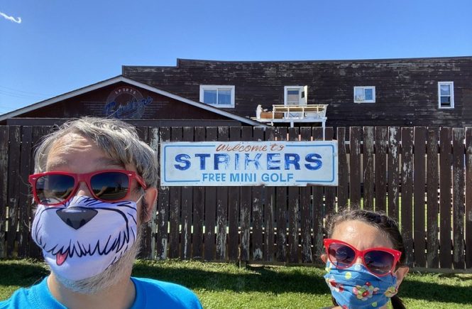 On the same cold, snowy day that we ventured out to Chaska to play Big Bear Mini Putt we also played Cosmic Golf. This 9-hole course is nestled in the depths of AirMaxx, a giant industrial building turned into a trampoline park and entertainment mecca, including an arcade, laser tag, bowling, basketball courts and most important, mini golf. It was an odd location, to say the least. This indoor, black-light course had literally just opened a week or so prior to our arrival so we knew we had to be one of the first to play it.