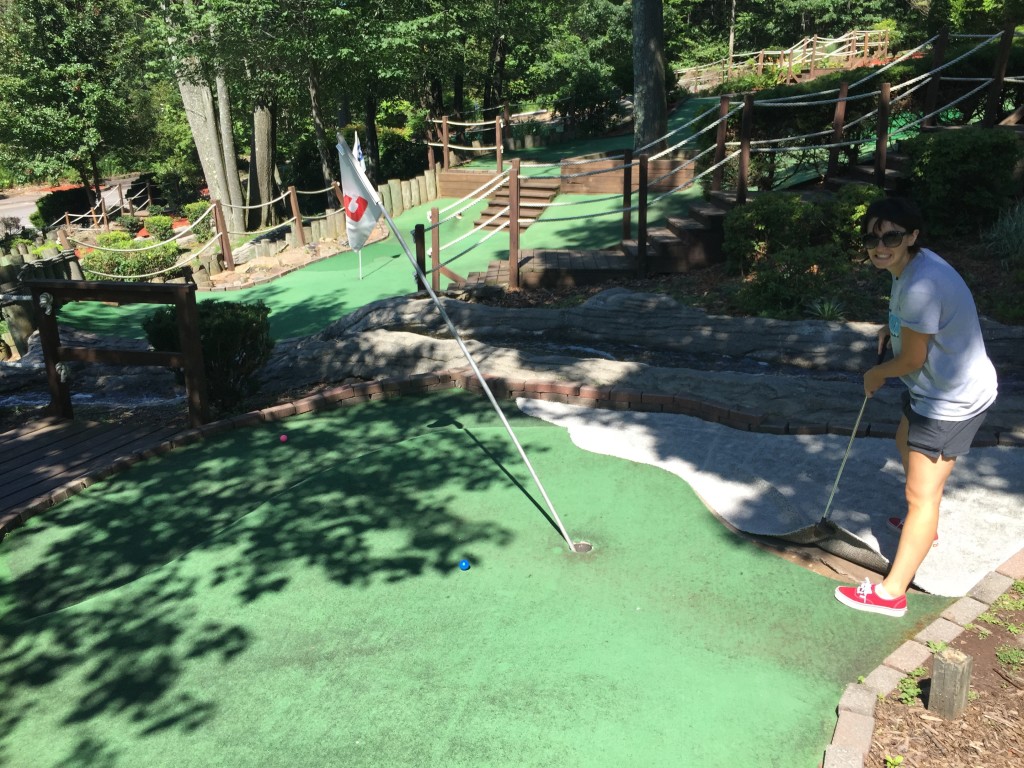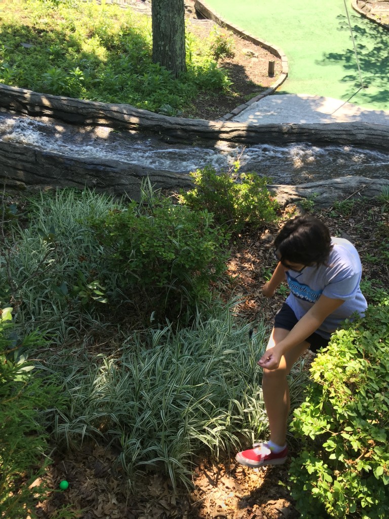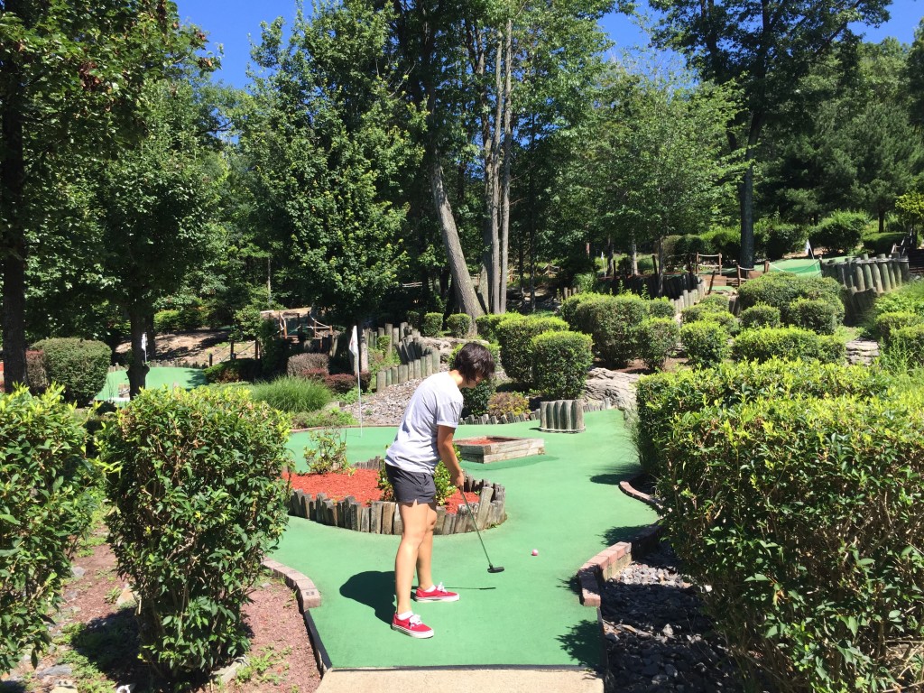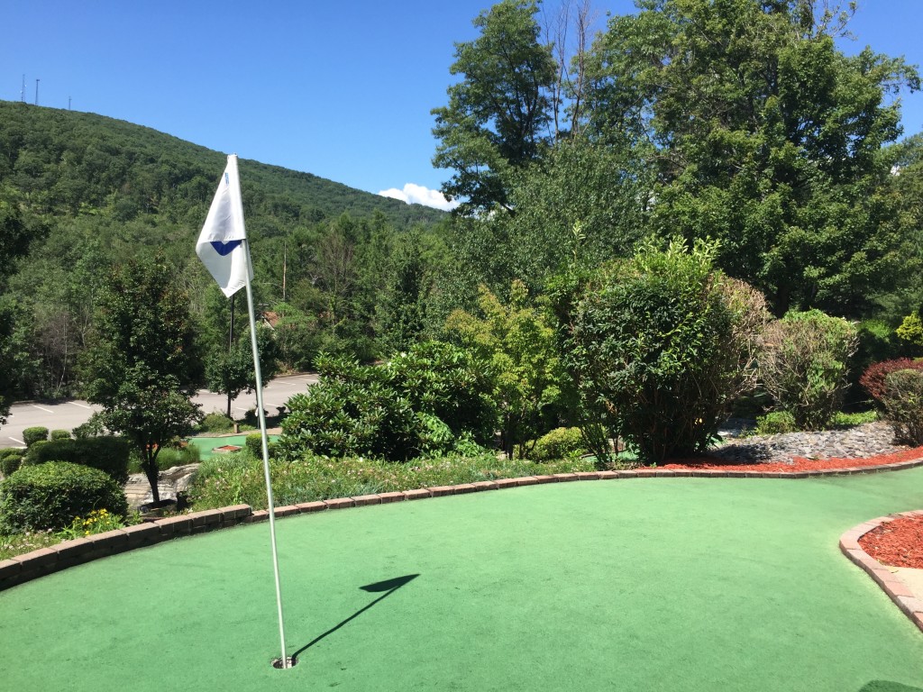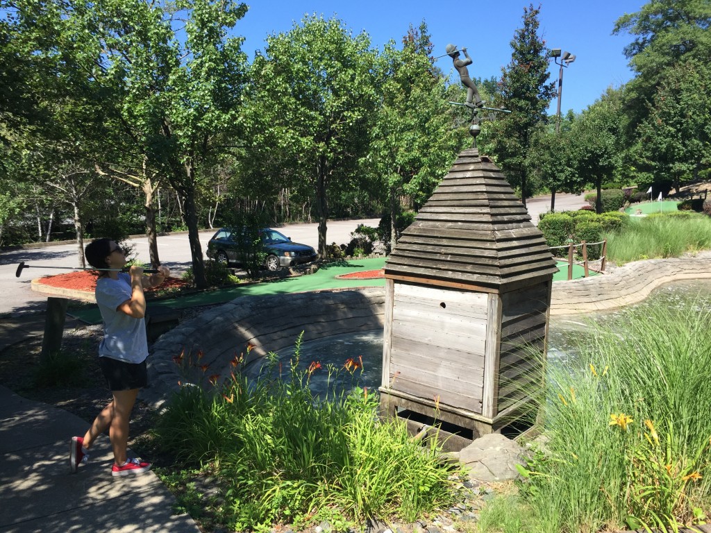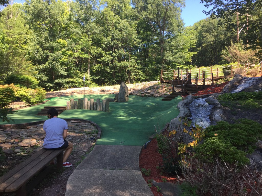 She is a phenomenal person, musician and dear friend that I’ve worked with on my record label for over 10 years. After a beautiful weekend of camping, swimming, eating and exchanging with a group of thoughtful creative people, we headed back towards the Pink Putter’s home in the Lehigh Valley. On our way we back we stopped off at this family run fun park that featured two mini golf courses. I was personally intrigued to play this course because it’s name reminded me one of the main characters on the Canadian comedy show Trailer Park Boys (NSFW language). Sadly, the course was not themed after a drunken caretaker (NSFW language) of a trashy Nova Scotian trailer park. We surveyed the scene when we arrived and opted to play just the Mountain Streams course.