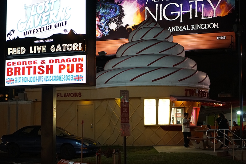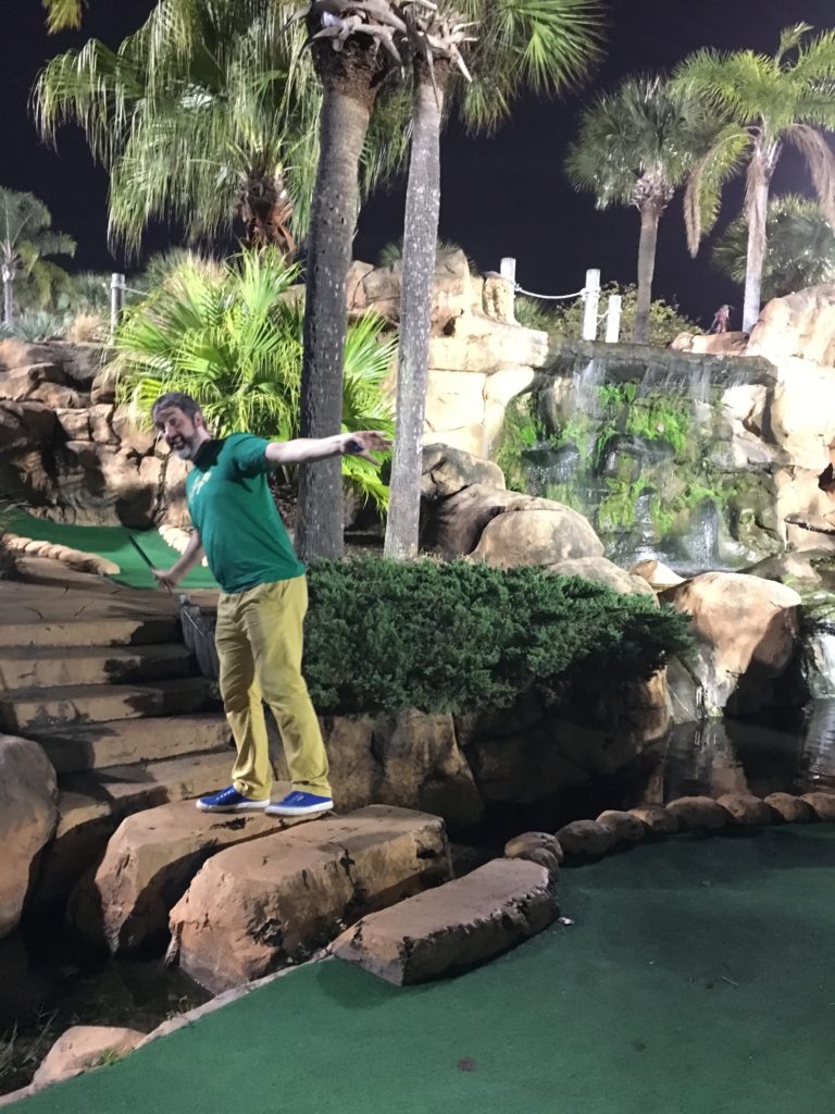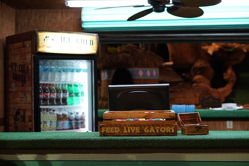 We continued our Orlando mini golf excursion hunting down any and all courses we could find. This included a handful along International Drive, the City’s main tourist-trap road full of a plethora of gimmicky souvenir shops and second-rate entertainment experiences. Here we stumbled upon Lost Caverns Golf, an adventure style course complete with live gators.