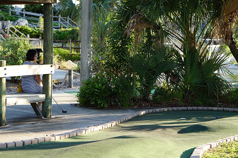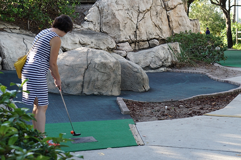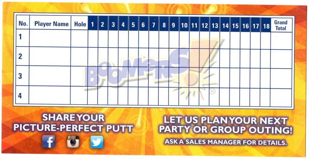 Par – As one would expect from most things that are part of a larger chain establishment, the mini golf itself was just average. Large playing areas, water features and sloped terrains made up for the course’s aging turf and lack of character. Obnoxious, unsupervised children rushed in front of us, beating up parts of the course with their clubs as they went. It should be no surprise that the key offender was the friend of a kid sporting a bright red “Make Donald Drumpf Again” cap. So between the kids and the hot afternoon sun, I was losing my patience with Boomer’s. Perhaps giving this place a shot on quiet weekday night would have changed my attitude.