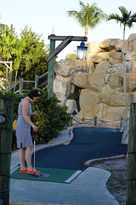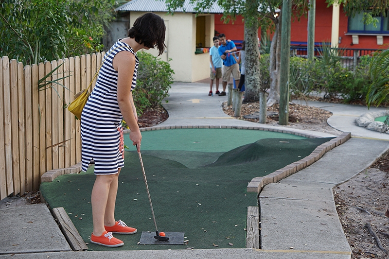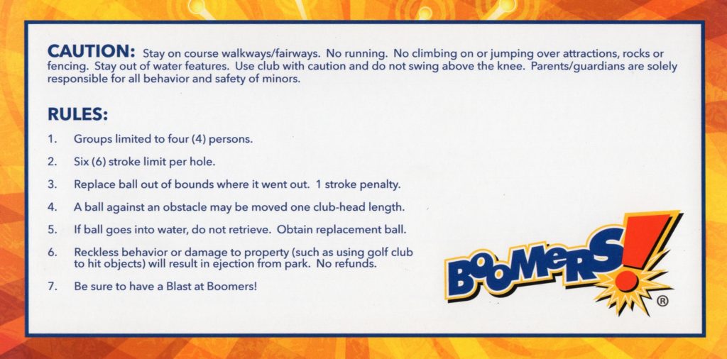 I had known about Boomer’s as a large, south Florida entertainment complex for years, but had never been. The place is massive and houses a Go-Karts, 2 outdoor mini golf courses, bumper cars, bumper boats, a rock wall, lazer tag, batting cages and an arcade. On a hot afternoon, we went out for a round.