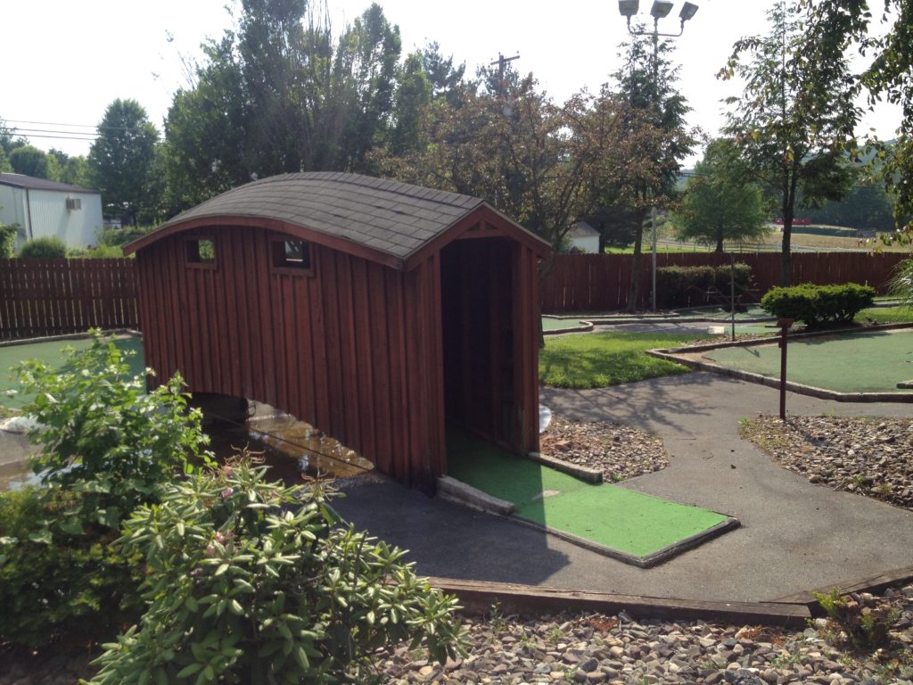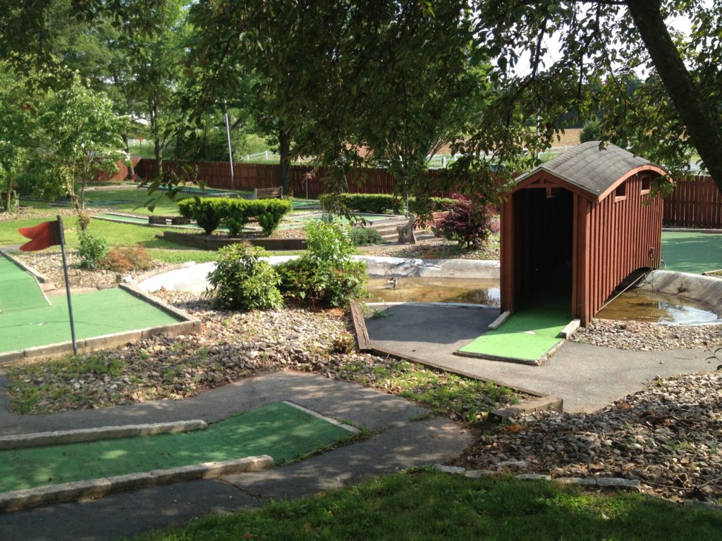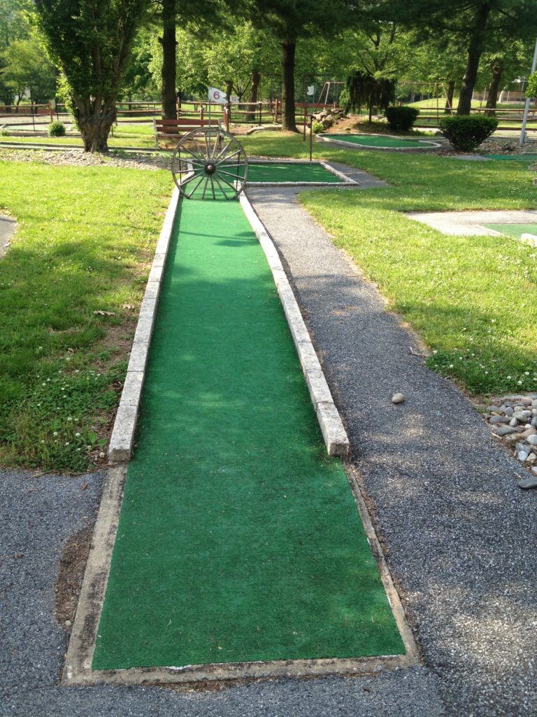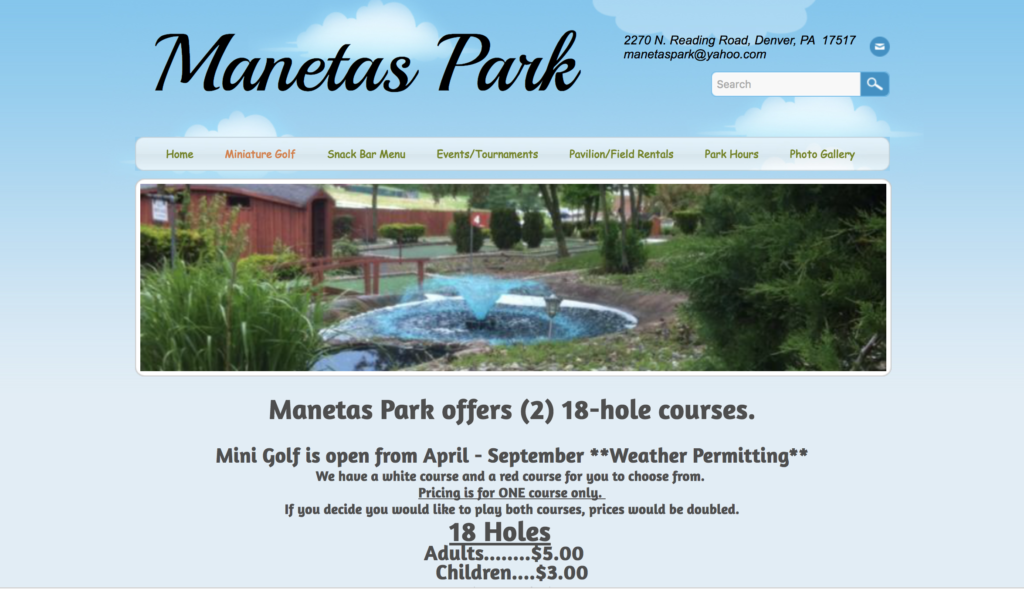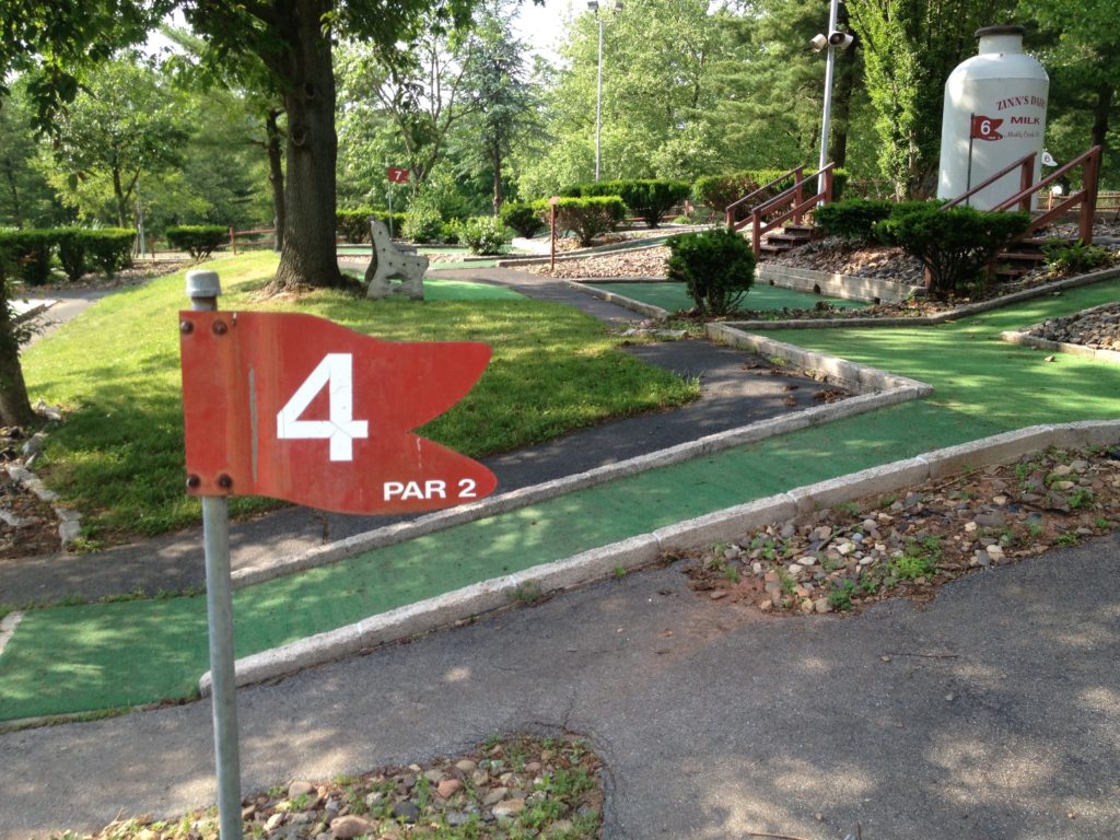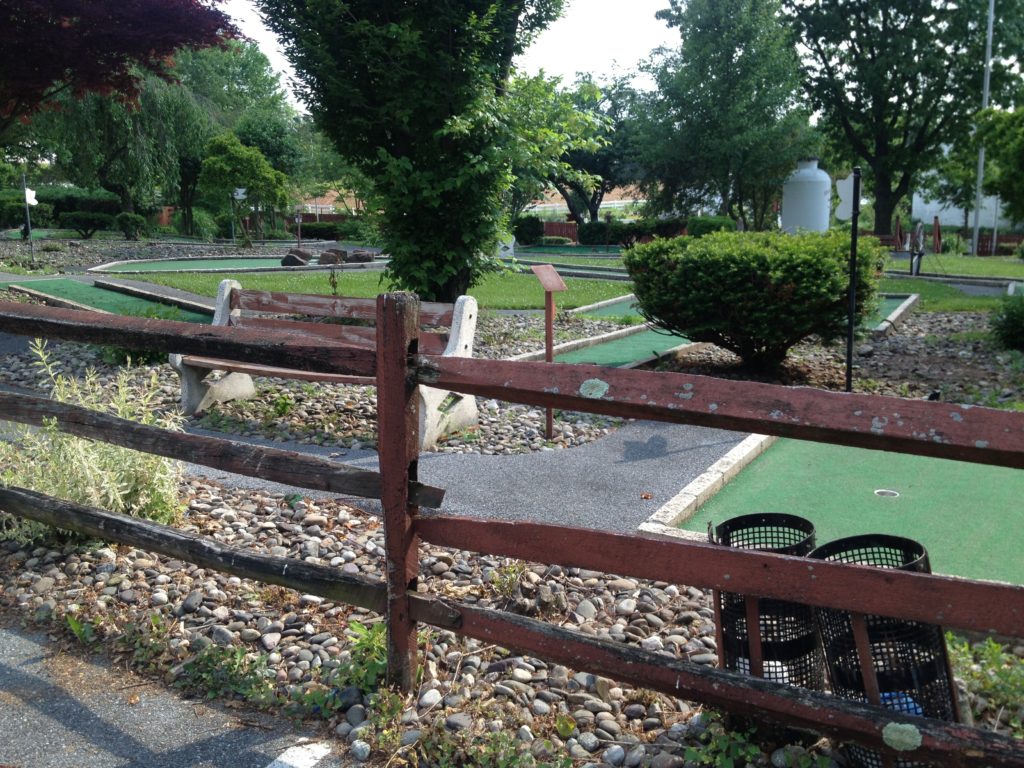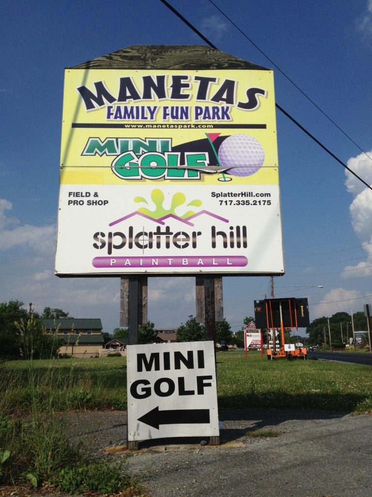 The Pink Putter and I drove out east for a dear friend’s wedding back in 2013. Robin was in the wedding party as a bridesmaid. The big ceremony and celebration took place late in the afternoon on my birthday so I used the opportunity to spend some time exploring mini golf courses in the touristy Lancaster, PA area. After two early afternoon rounds at Professor Hacker’s Lost Treasure, I hopped over to Denver, PA to the bride’s family home for all the pomp and circumstance. I had time to burn between the ceremony and party while The Pink Putter was out taking pictures with the wedding party. Lucky for me, I stumbled upon Manetas.