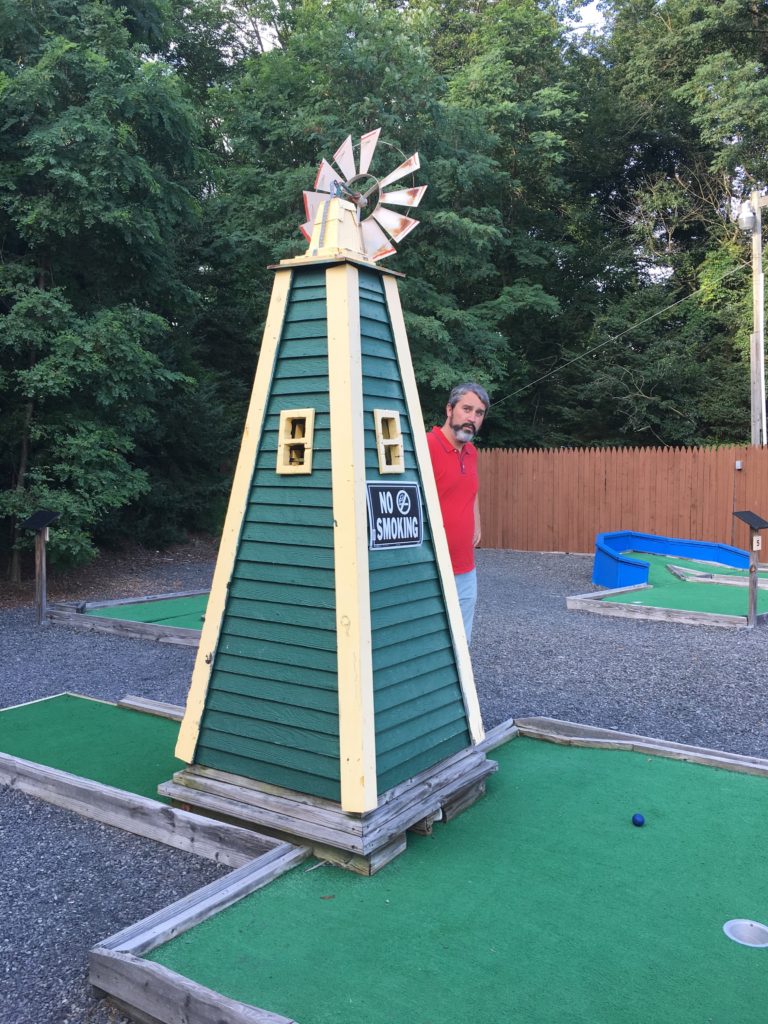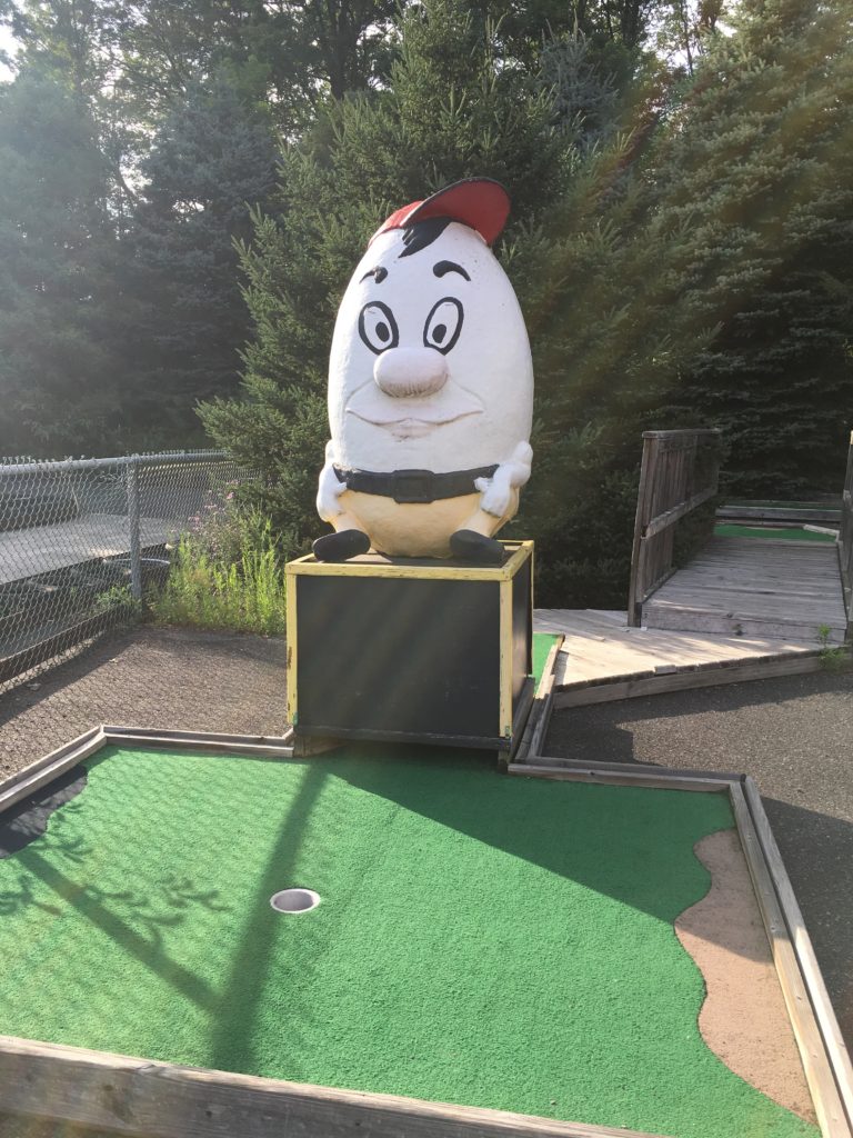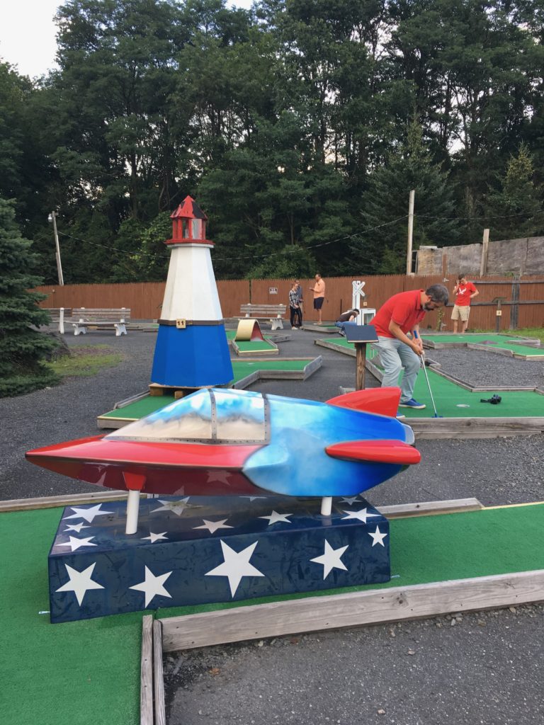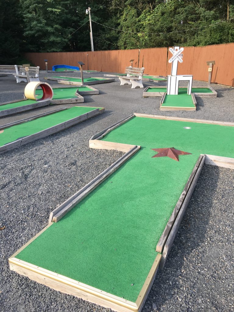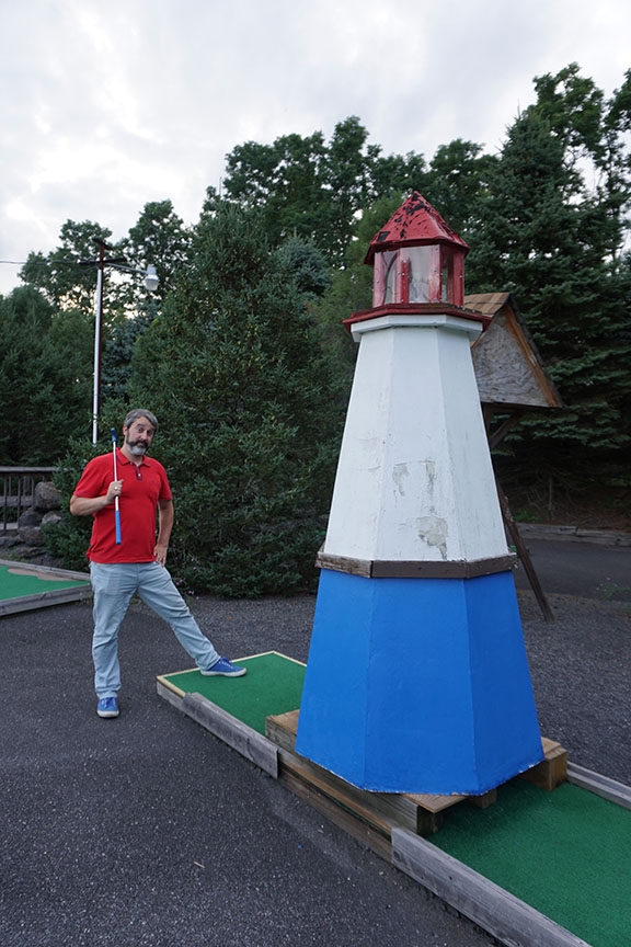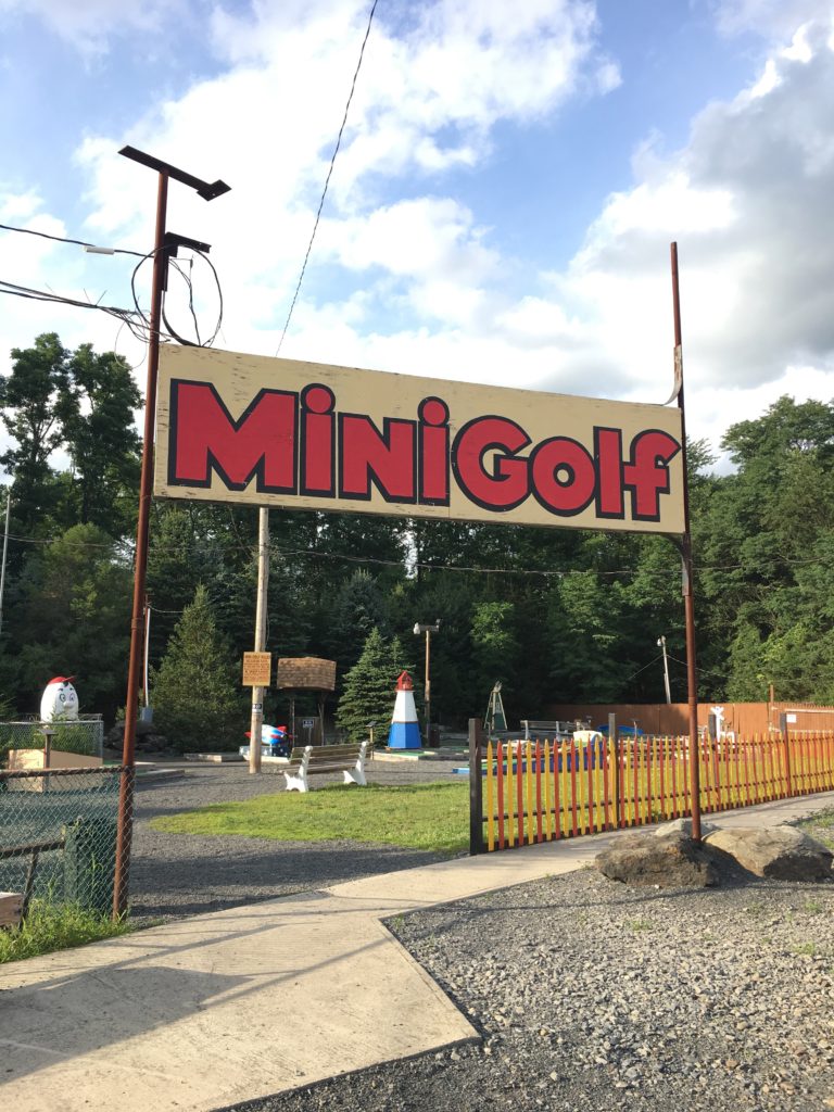 After a road trip halfway across the country, Mr. Tee and I spent a few days back in the Lehigh Valley visiting my childhood friends and some family. We decided to do a day trip up to the Pocono Mountains, an area near the Delaware Water Gap dotted with resorts, skiing, waterparks, campgrounds and hiking. It’s a popular getaway destination for a lot of New Yorkers. Naturally, where one can find resorts, one can also find mini golf. However, it appears that the heyday of the Poconos has come and gone, as a lot of places were quiet and rundown, a lot different from my childhood memories.
