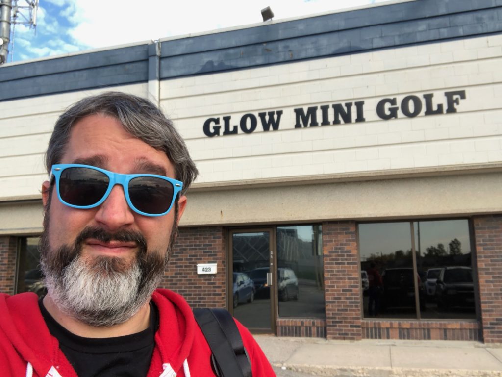 Following an enjoyable solo jaunt to The Golf Dome, I decided to wrangle up others who were part of the music exchange event during my second day in Winnipeg. I floated the idea of a mini golf outing during a workshop and got two takers in Jesse Stensby of Vitriol Promotion and Stephen Carroll of The Weakerthans and Manitoba Film & Music. A cab driver who didn’t recognize the name of the course and needed assistance from my mobile device eventually got Jesse and me from the heart of downtown Winnipeg to U-Puttz. Stephen met us there and proceeded to best us Minnesotans in a solid round of miniature golf.