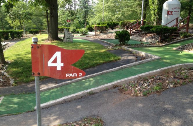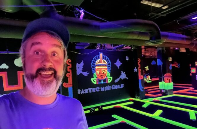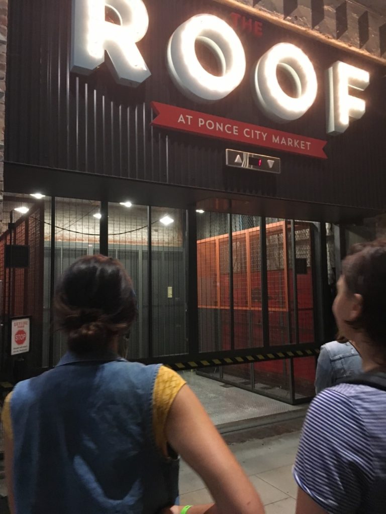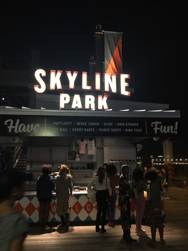 Drive By – Last fall, myself and the rest of the RADAR Art crew (Anna and Desiree) were presenting the Barter Boat as part of Art on the Beltline in Atlanta. We were stationed for the weekend in the Historic Fourth Ward Park. A rainy day ended the project early and we had a little free time to explore the area. We headed over to Ponce City Market to grab a bite to eat and I quickly realized that we were in the same building as the notorious Skyline Park which I knew had mini golf.
