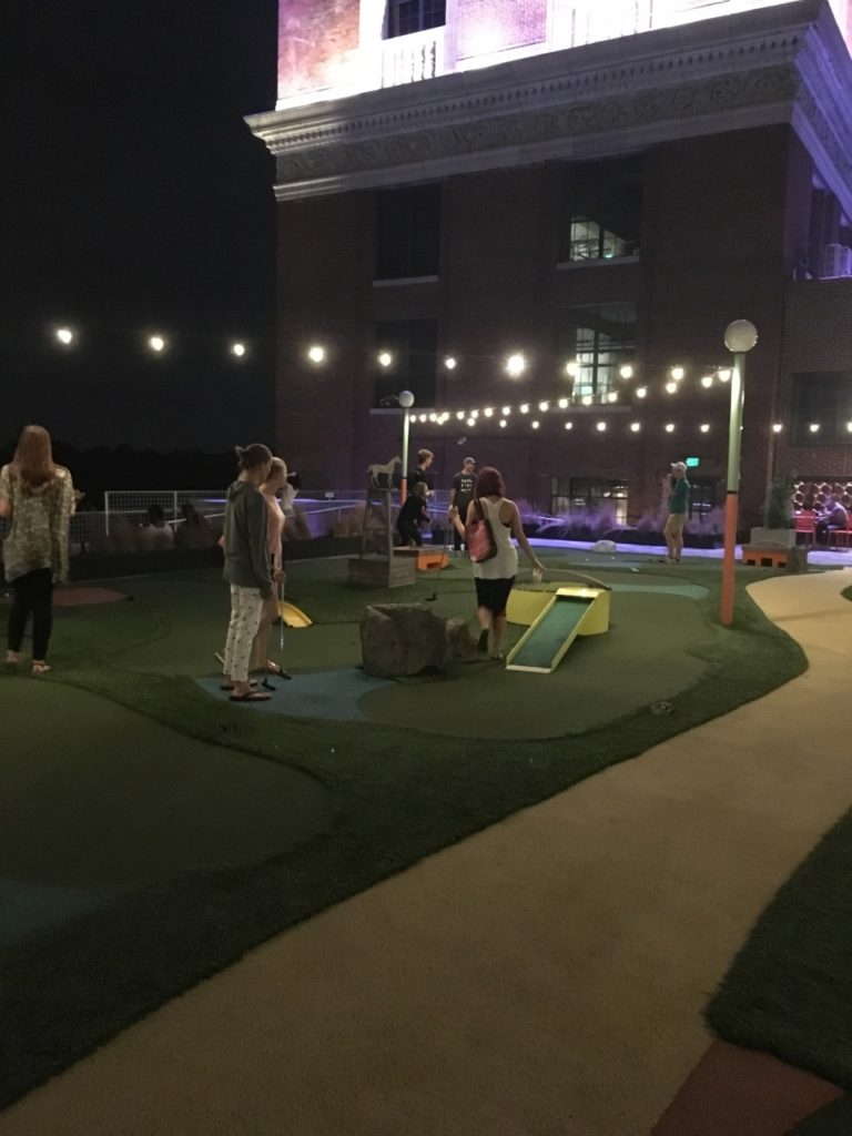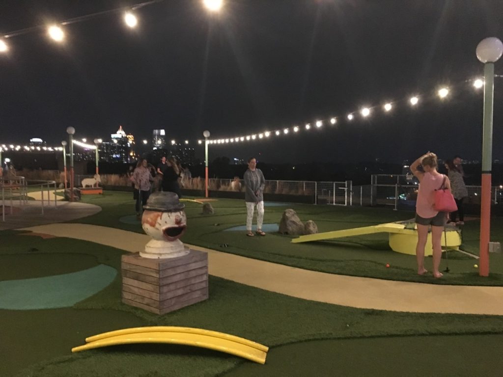 Skyline Park is a clever attraction. It’s a rooftop turned mini carnival with well-curated signs, games activities, and bars. It’s definitely a scene and a cool hangout with a lovely view of the city, however, the mini golf to me appears to be just average. If you want a full entertainment experience, maybe the price of admission would be worth it, but if you want a great game of mini golf, this probably isn’t the place to go. I do however recommend grabbing a bite to eat at many of the delicious restaurants downstairs.