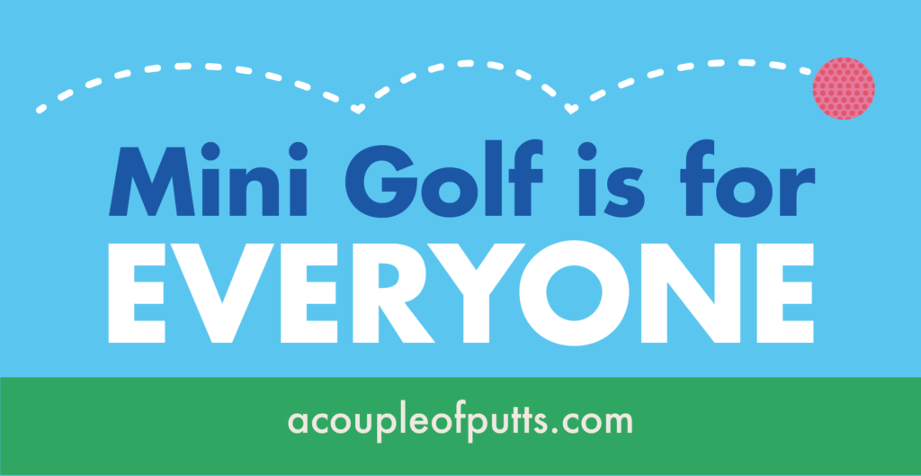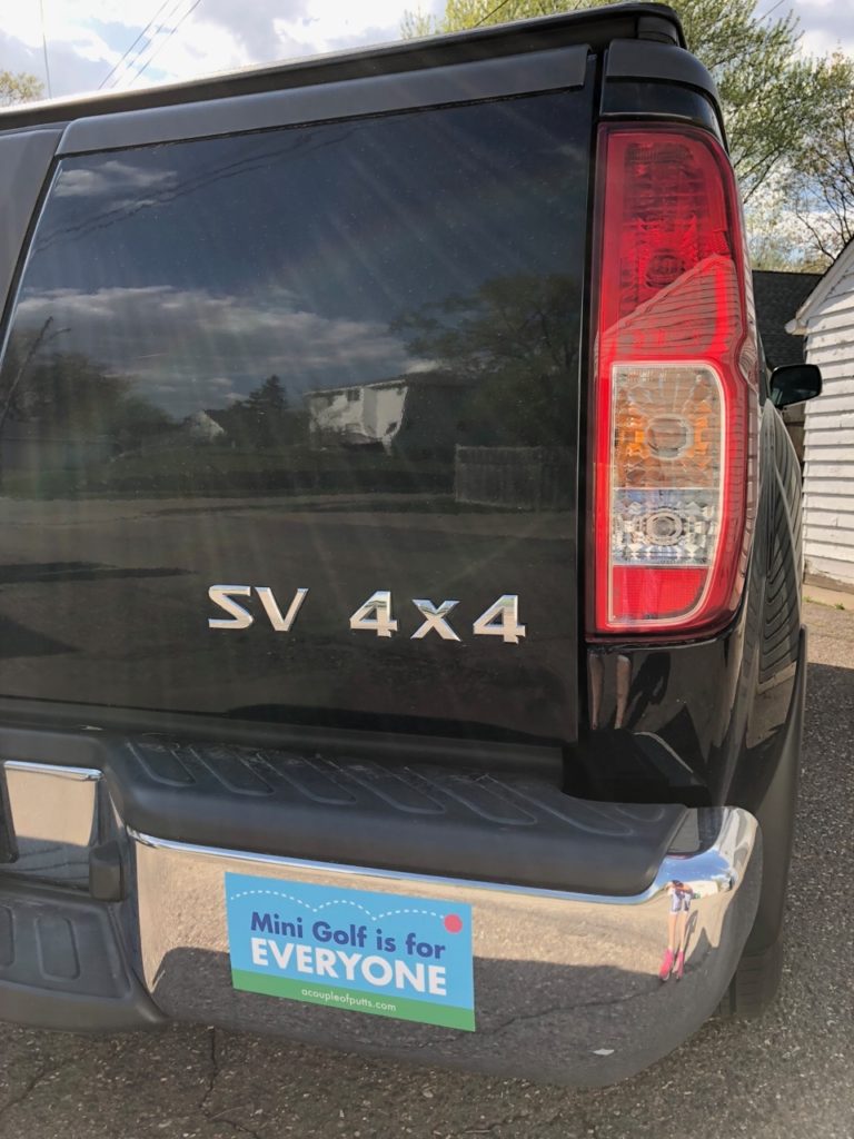 We hope that those who receive a sticker will prominently display it their your car, in their office or at their establishment. If you’d like your own Mini Golf is for EVERYONE sticker, don’t hesitate to get in touch! Our email is acoupleofputts@gmail.com