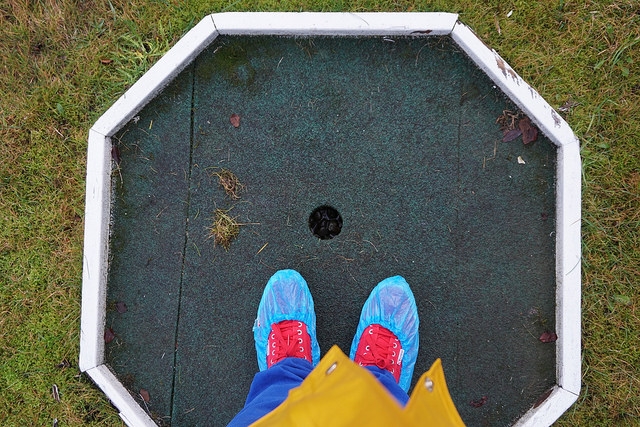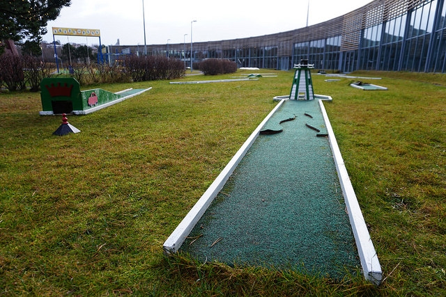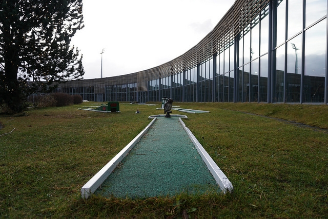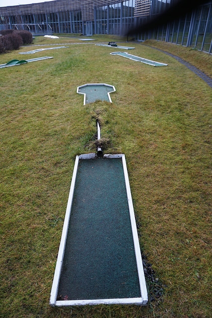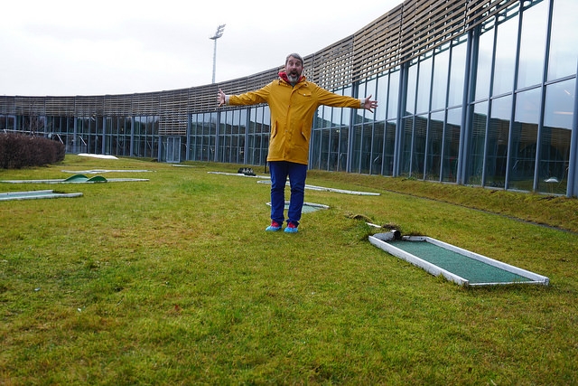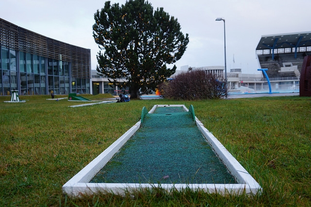 Undeterred by previous failed attempts, I succeeded in 2017. My first discovery was the 9-hole homemade course at Laugardalslaug. Oddly enough, I had been to this massive swimming and sporting facility in 2015. Little did I know there was a charming course steps away from a colorful waterslide and thermal pools.