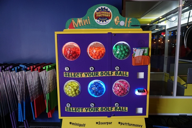 - Colored rubber covered putters. Ability to select ball color via machine