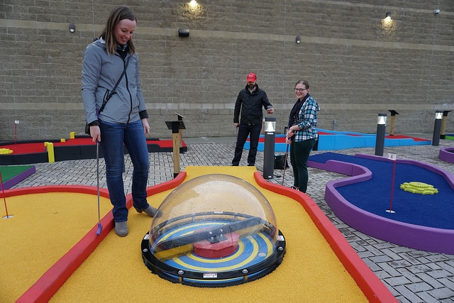 A few of the mechanized holes were out of order on different visits and as of May 2022, the rollercoaster hole still doesn’t always operate properly