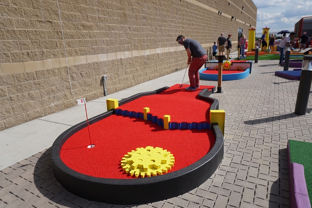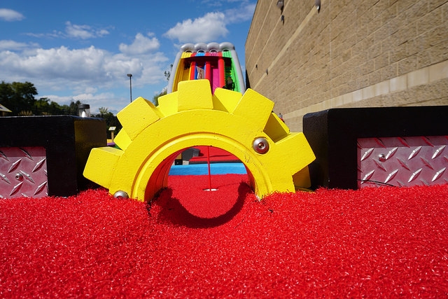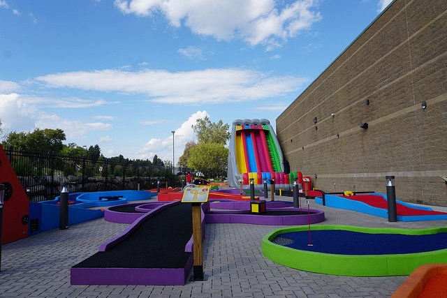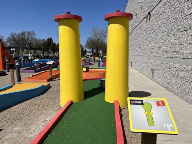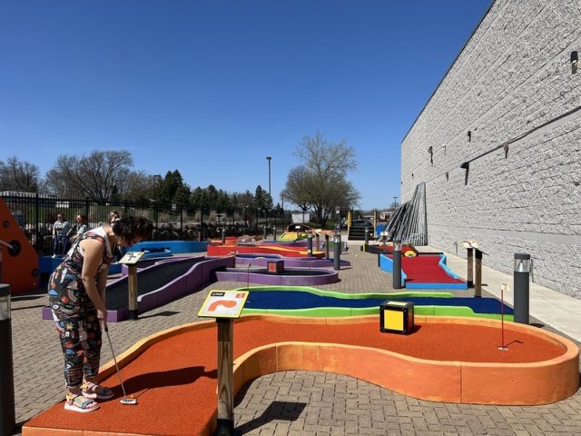 Hole-in-One – The splash of vibrant colors that greet you as you step outside of the building and onto the course puts me in my happy place. I came in expecting the Oakdale location to be an exact replica of the hole-in-one Minnetonka course. But to my surprise, there was a high level of variety between the two locations. Aside from the signature first hole smokestack design, each course has its own custom obstacles and designs. The rollercoaster and roulette holes are similar to two of our favorite holes at Par-King which is a major positive in our books. I strongly recommend playing both Big Thrill Factory miniature golf locations in Minnesota.