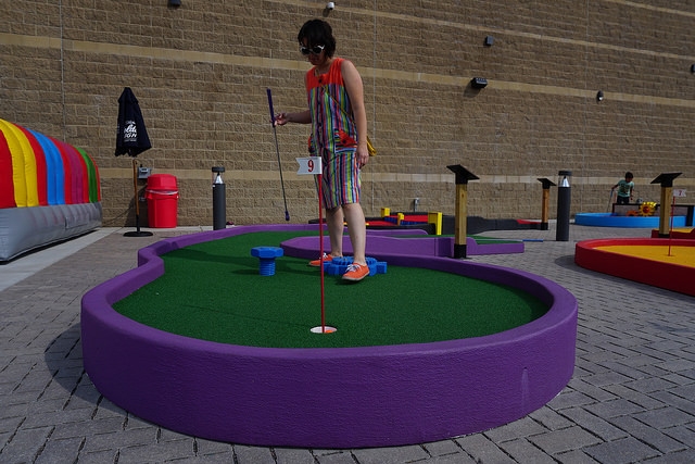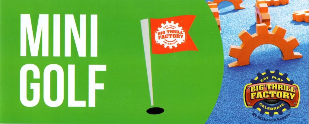 - $7 / 28 points (Upgrade to Glow Golf for only $5 more – Get a 7-Color golf ball souvenir). Pay with Big Thrill Factory Play Card. Self-service