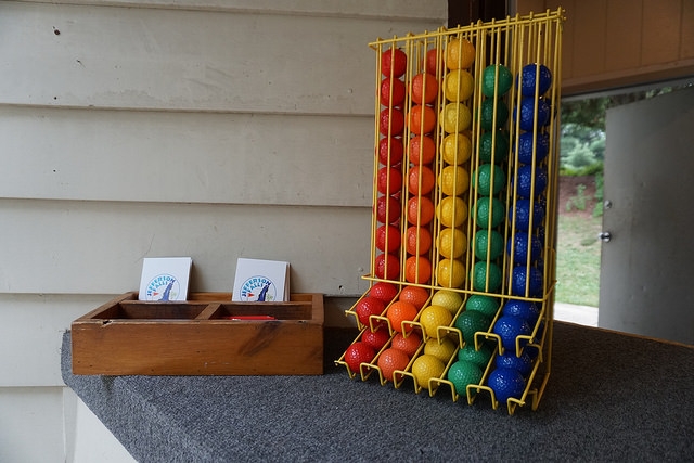 - Solid colored ball selection. Flags in the holes