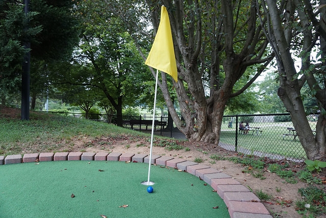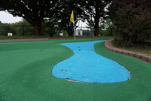 Par – Solid putting course. The turf was in better condition than the nearby Upton Hills and the 18 holes offer a similar voyage around an expansive waterway. A peaceful park place with no flashy obstacles or themed environments. Minus the worn turf and slight flooding on a hole or two, you’ll find a challenging and varied space to take in miniature golf near the nation’s capital.