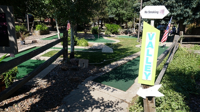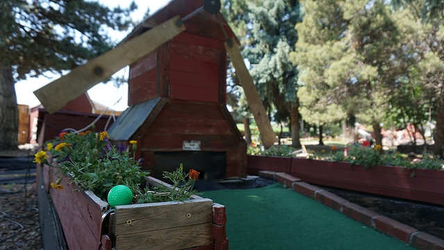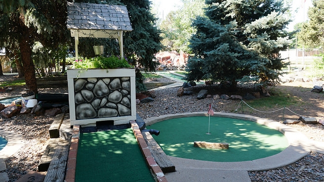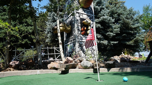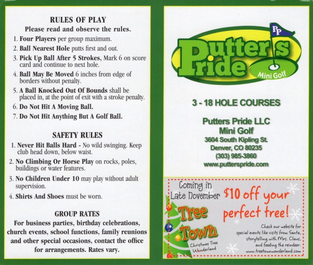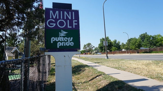 Our quick stop in Denver a week early in June allowed us to only play a handful of spots from the long list of mini golf courses we cobbled together before heading out west. Given that Boondocks, Adventure Golf, and Colorado Journey were all squarely above average courses, I made sure to take in an additional jaunt out from the mountain towns back to the metro area. Maybe there was something in the bright blue water in Denver that made all of the courses special? Looking online, Putter’s Pride seemed like the next best choice on the list. Photos I found online looked promising and the volume of three 18-hole courses added an extra level of excitement.