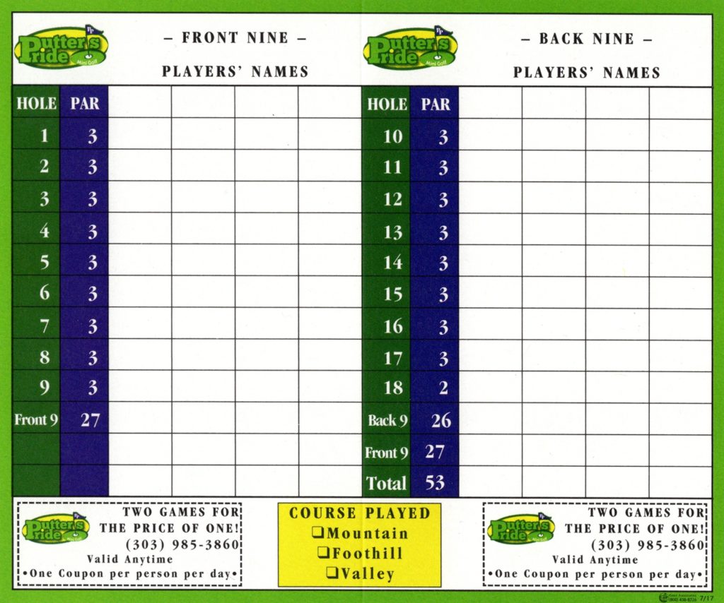 - 3 18-hole courses. Par 53 on each. No separate par for each course