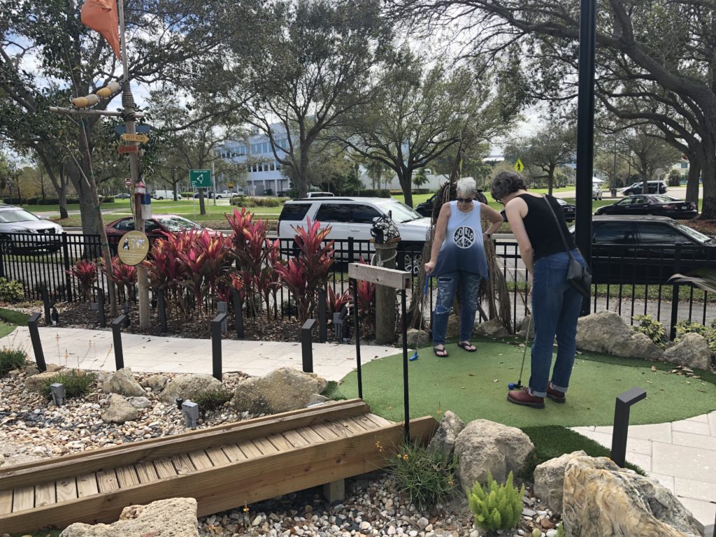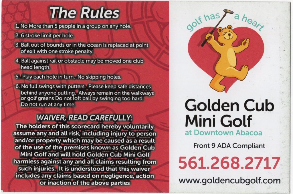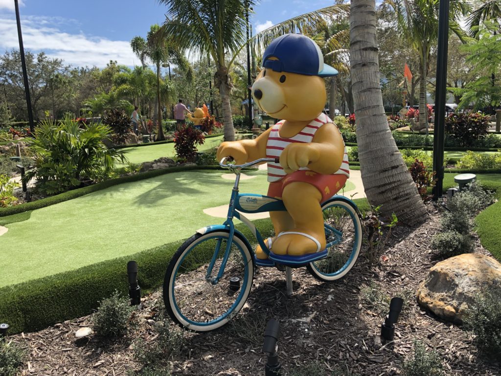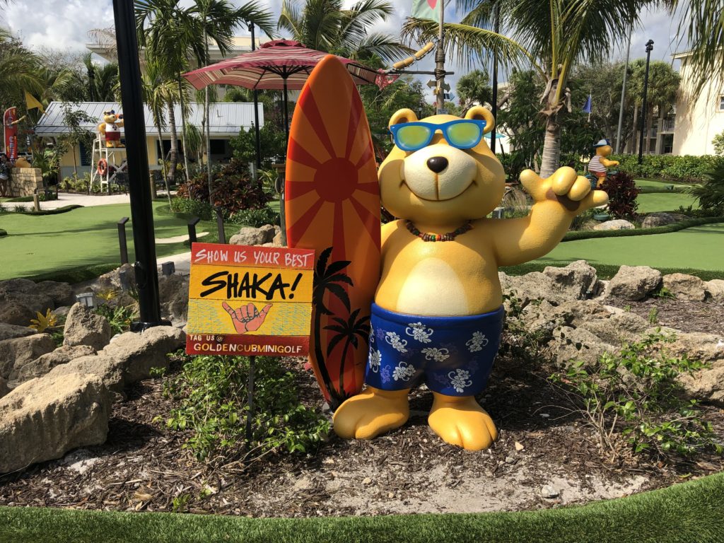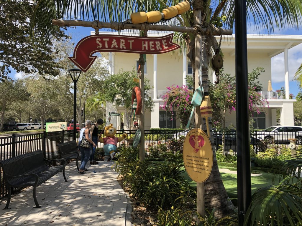 During the snowiest February ever recorded in the history of Minnesota, I had to privilege to escape to sunny Florida for a long weekend to visit family. While Mr. Tee and I have played most of the mini golf options in Southern Florida, I knew I’d need to make a visit to the newly built Golden Cub Mini Golf in Abacoa. This course opened in July 2018 and is owned by the same folks who own Lighthouse Cove Adventure Golf in nearby Jupiter Beach. The course was designed by Nicklaus Design — a company founded and run by retired professional golfer Jack Nicklaus. They brought in a real golf course architect to create a shrunken version of a typical golf course, complete with bunkers, sand traps and sloped grounds.