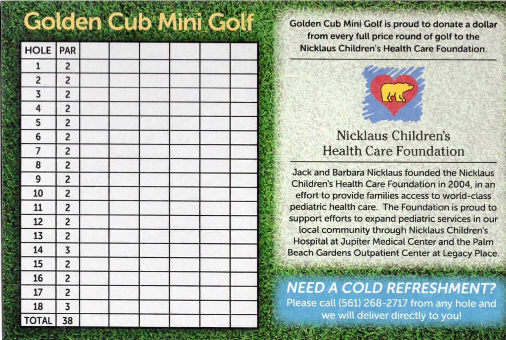 - Golden Cub proudly donates a dollar from every full price round to the Children’s Healthcare foundation that Jack and Barbara Nicklaus founded in 2004