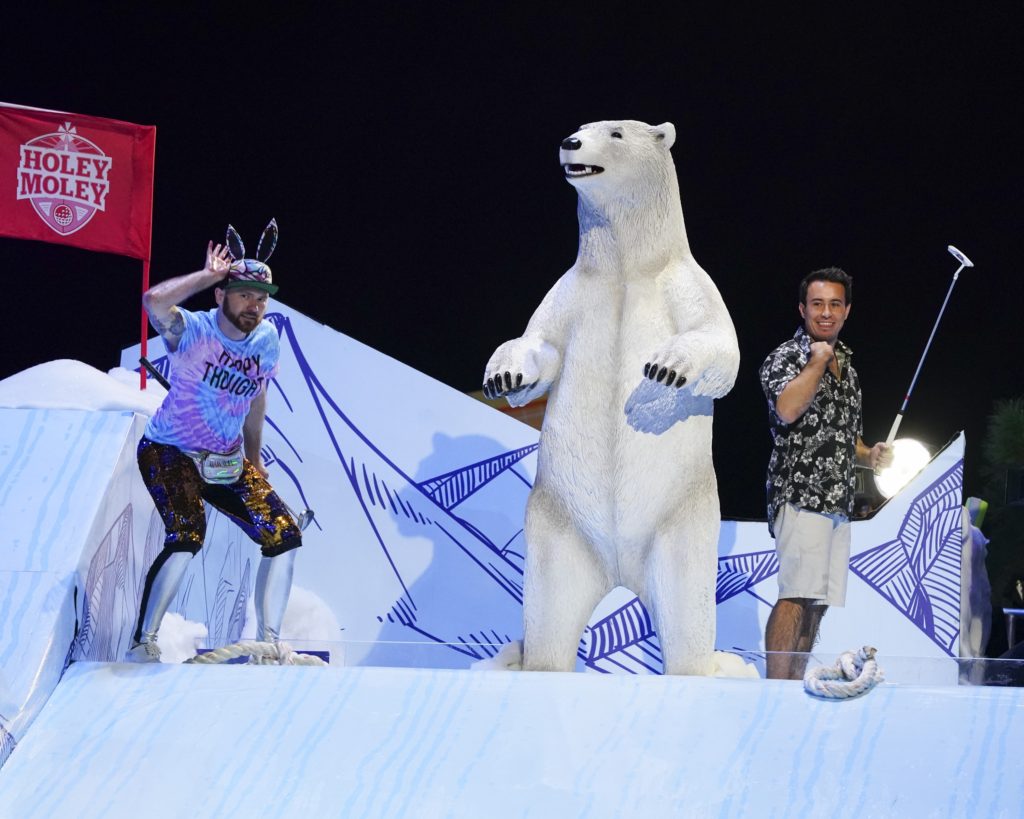 An intense matchup pits a stay-at-home mom against a former pro-golfer, while a self-proclaimed math nerd hopes his geometry background will impress Stephen Curry on “Caddysmack.” Across the course, Mick Cullen, mini-golf “rockstar” and world record holder for most holes of mini-golf played in 24 hours, tries his hand on “Surf or Turf”; and the night’s oldest competitor proves that age is but a number. In a nail-biting finish, a tie on Mt. Holey Moley forces contestants to put it all on the line in a putt-off for the winnings.