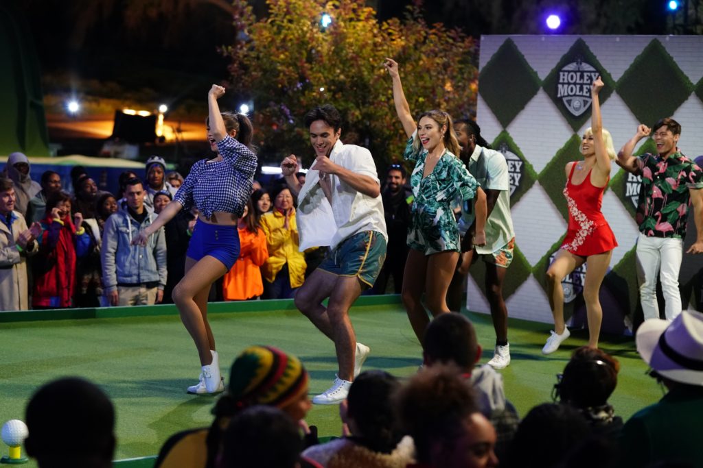 This week’s episode of “Holey Moley” sees a new batch of diverse contestants taking on the most epic mini-golf course ever created. An experienced player, self-proclaimed “putting ninja” faces off against a casual, recreational mini-golf player on “Log Roll,” where play-by-play commentator Joe Tessitore realizes his striking resemblance to the hole’s own Putt Bunyan. Across the course, a math teacher goes head-to-head with a product spokesmodel on “Dutch Courage,” where the infamous windmills claim their latest victim. Over at “Arc De Trigolf,” an honest contestant dubbed the “Holey Moley Messiah” self-reports an accidental tap that costs him an all-important extra stroke, and a summer beach party pops up on “The Distractor.” Elsewhere, sideline correspondent Jeannie Mai and course mascot Sir Goph get fast and furious in a golf cart race; and Stephen Curry, “Holey Moley”’s Most Valuable Pro, admits even he is scared of the daunting final hole, “Mt. Holey Moley.”