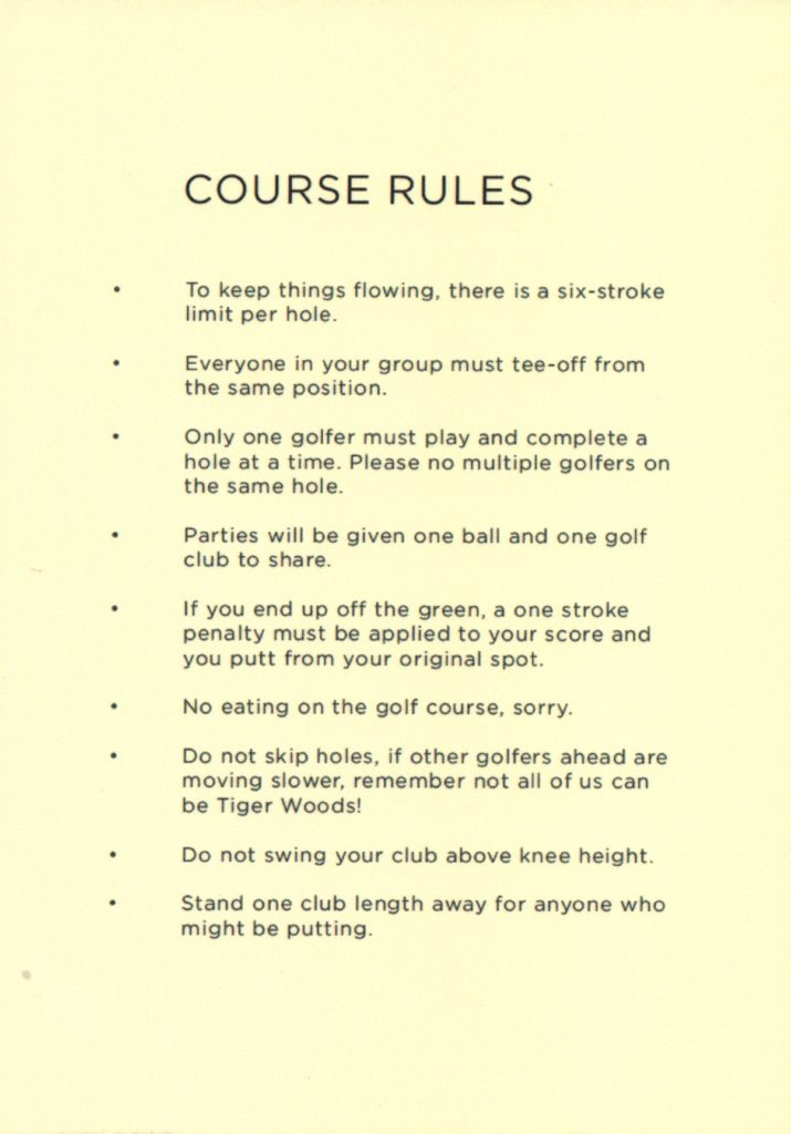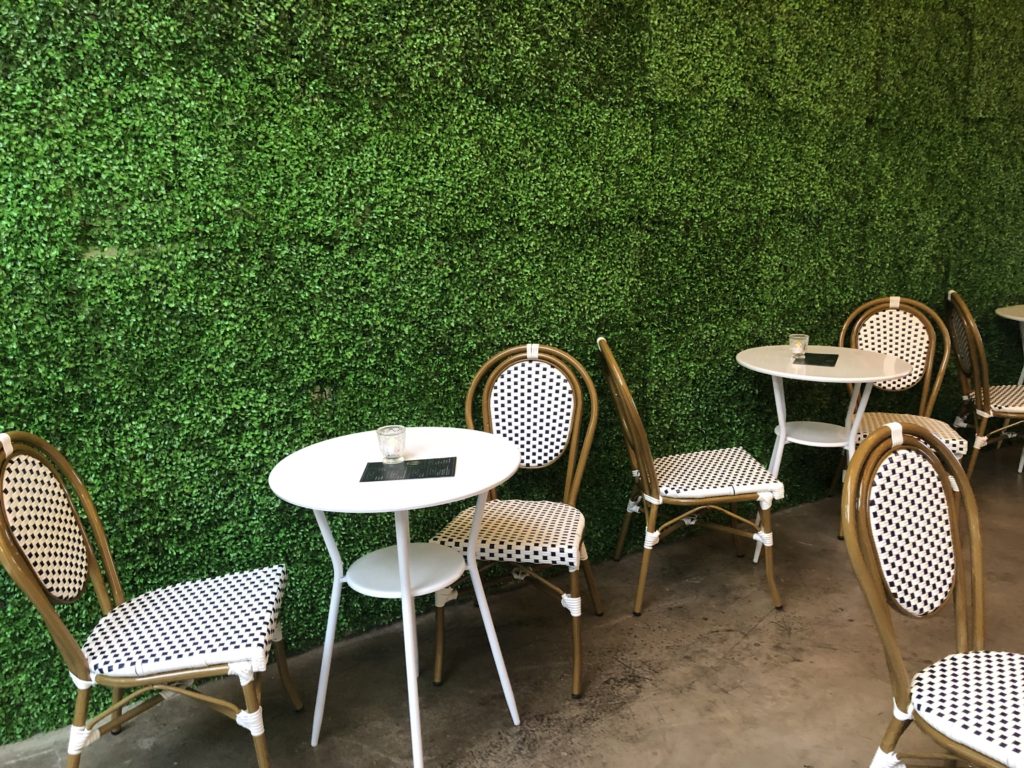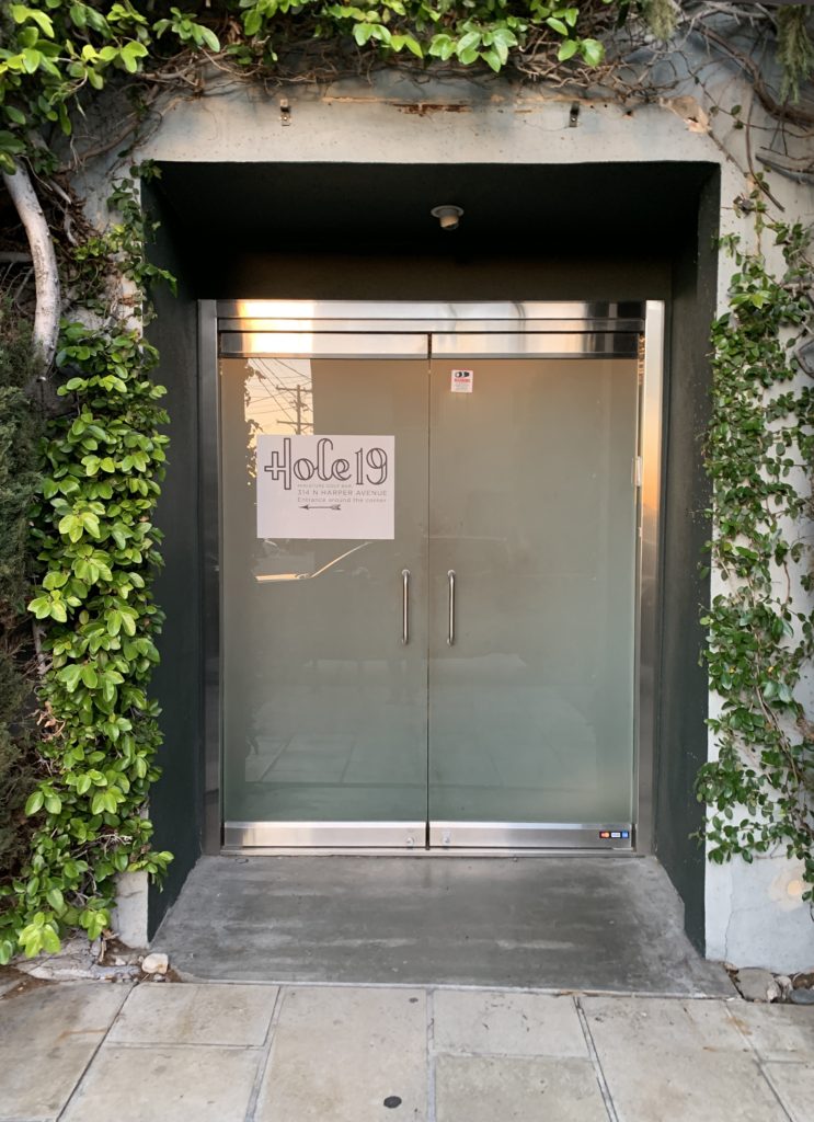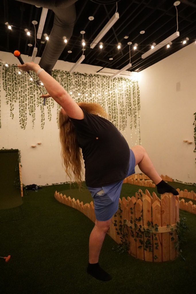 Birdie – This pop-up 9-hole miniature golf course and bar was open in Los Angeles for 8 weeks in April. Inspired by UK’s Swingers style putting greens, this space was intimate and entertaining. Entering through an alleyway, we found the bar area, a space with faux hedge covered walls. It was brightly lit by the sun which poured through the windows of its large garage doors as well as string lights hanging overhead. The bar area had chairs and tables for sitting, as well as a secondary area with plush couches and a large projection screen. Just off this room was a faux ivy-covered hallway which led to the mini golf course. The whole course was located in a small and cozy room with the floor entirely covered in turf, encouraging us to immediately kick off our shoes and play in our bare feet or socks. There were conveniently placed shelves along the walls and columns of the room for setting our drinks down. The music was blasting. The 9 holes themselves were basic, handmade wood and turf structures that were small but offered various levels of challenge. Although there were no over-the-top obstacles or bright colors, the course had a consistent theme and vibe. The best part about our experience was that we had the entire room/course to ourselves for about an hour so were able to drink, dance, take silly photos and play the course twice in a casual way. For our second round, we opted to all play every hole with our opposite hand and on one foot, just to shake things up.