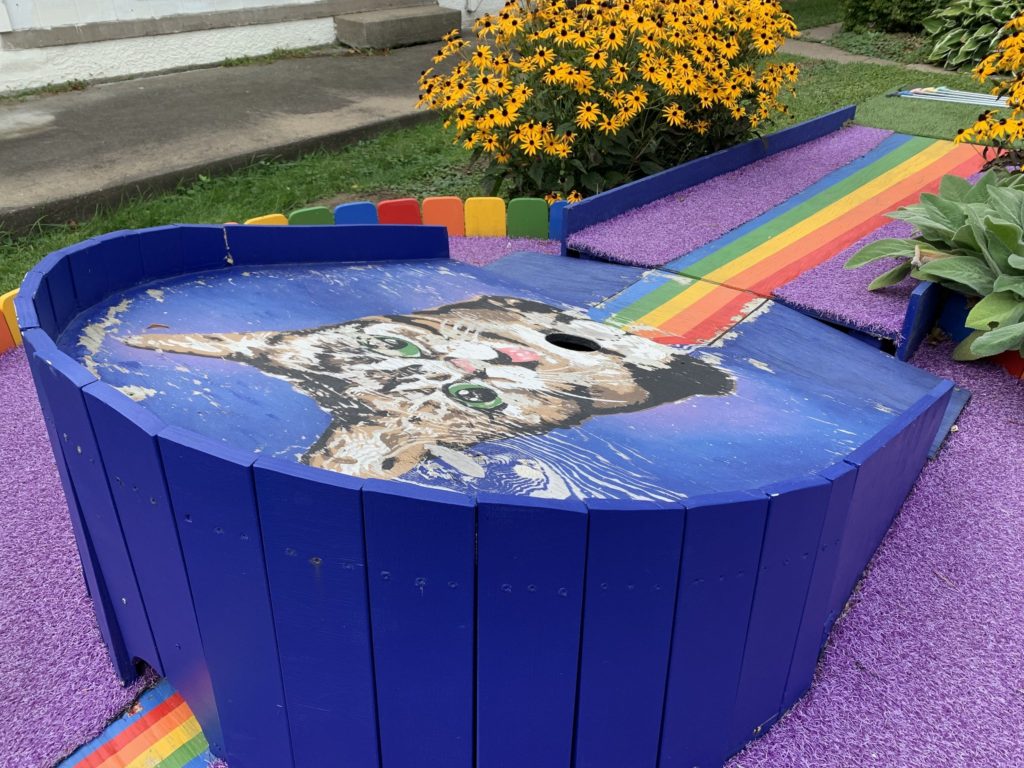Yep, that’s us chatting about our mini golf adventures including our experience on Holey Moley. Joe Mazan chatted and putted with us in our backyard. Our Lil Bub themed Lil Golf is on its last leg and near retirement but we were glad to see it featured once again.