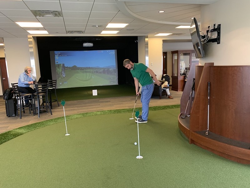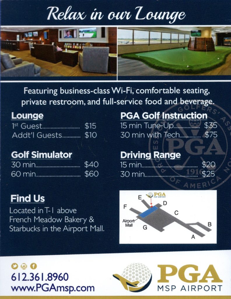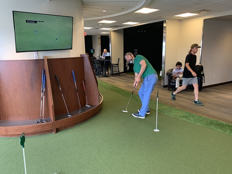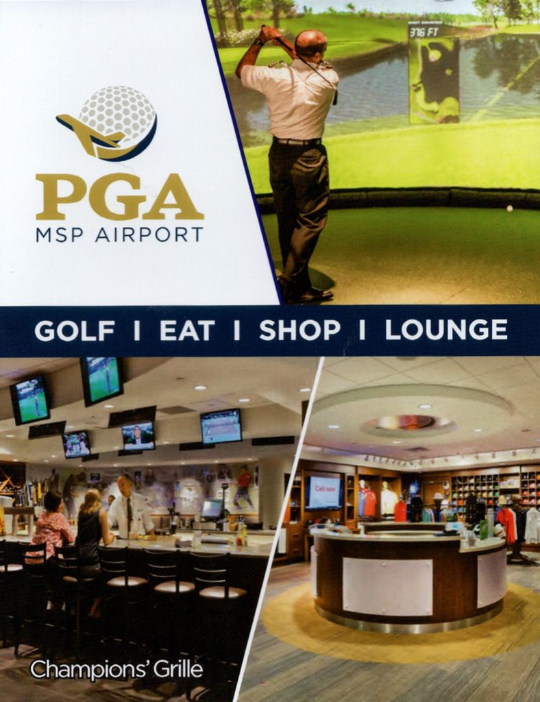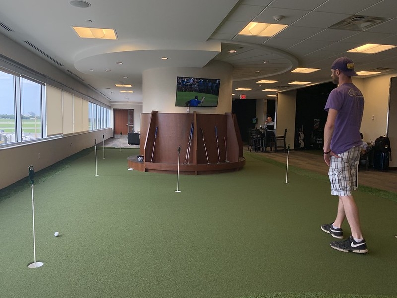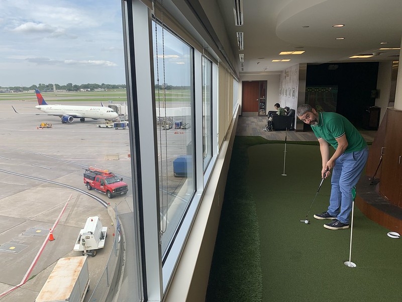 Feels like more options to get your putt on are springing up all over in big publicly used spaces. Libraries are doing pop up putting fundraisers. Big and small museums are engaging local artists to make something mini to play. Cities have been placing courses in public parks. Airports seem to be joining in on the fun. For the past few summers, you could play at the Denver airport and now you can get in practice while traveling to, from, and through the Minneapolis-St. Paul International airport. Tucked between concourses E & D in the mezzanine area is a PGA themed space. For no fee, you can visit the pro shop and bar/cafe but for a few bucks, you can pass the time waiting for your flight on the tees and greens.