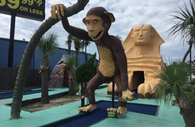 Early on in our search for distinctive mini golf to play around the world, we landed on Myrtle Beach due to the ridiculous concentration of courses within a single city. Mayday Golf kept popping up on national top 10 lists and the spectacle of a massive airplane crashing and full-size helicopter amongst safari animals piqued our curiosities.
