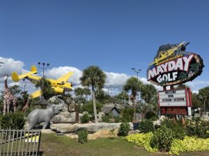 Mayday Golf is a small, family-run, miniature-golf course built in 1997 in Myrtle Beach. Featured on a Travel Channel program “Mini Golf Madness” about worldwide miniature golf courses and subsequently voted “Best Survival Course,” the aviation theme is no accident, as one of the partners is a licensed pilot.
