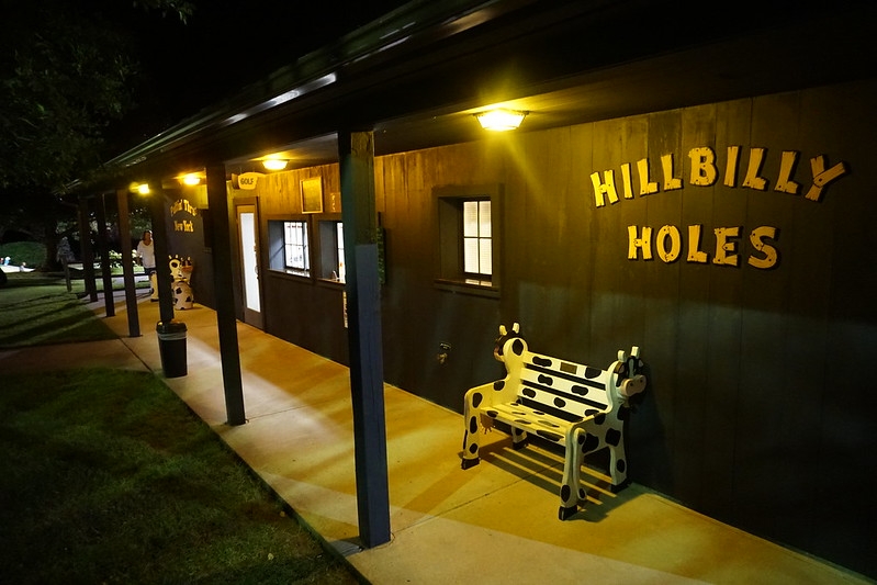 With only one full day in the Lake George area of Upstate NY, we had to make tough choices between courses we would opt to document for a “Drive-By” review/future visit and those that we would invest the time to play in full. Nestled about 10 miles east of Goony Golf and Around the World, Hillbilly Fun Park ended up not making the cut for the courses we’d get to fully enjoy and play. This duo of courses highlights the polar opposites, NYC and “hillbilly country”. It’s equally odd and intriguing. Had both of us not been thoroughly exhausted, we would have ventured through each of the two 18-hole courses. This was easily the most compelling of the courses we didn’t play and top of the list to play next time through the area.