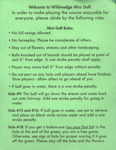36 holes of mini golf (play twice): $11.95 per person