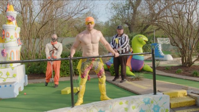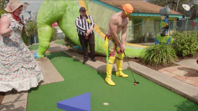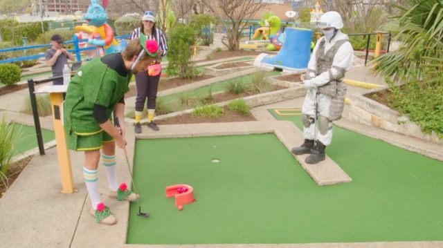 We’re past the halfway point of Hardcore Mini Golf Season 1 and getting close to finding out who will win the coveted(?) green jacket. Aaron Kaminski of O-Street Mini Golf and Randy Rice joined Mr. Tee and Pat again on We’re Gonna Need A Bigger Windmill to talk through the 2nd round and semi-finals matchups at Peter Pan Mini Golf in Austin, TX. The competition has been whittled down to 4 oddball characters and you can tune into our discussion of episodes 5 & 6 of Hardcore Mini Golf below. We’ve included some screenshots of the competitors we discussed.
