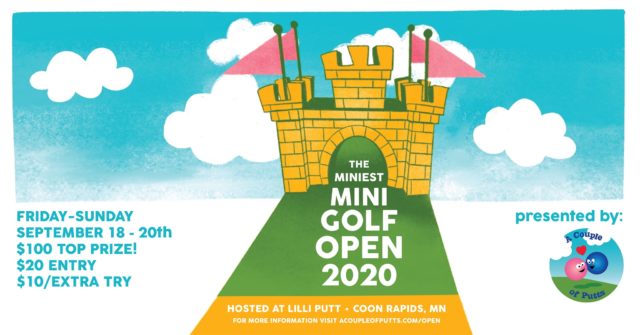 A Couple of Putts is proud to announce our first ever miniature golf tournament! The Miniest Mini Golf Open will take place at Lilli Putt in Coon Rapids, MN on the weekend of September 18-20th. Players will compete over two phases for the coveted trophy and $100 cash prize! Medals and cash prizes will awarded to the top three lowest scores.