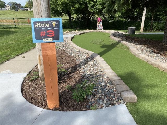 MaltTees Mini Golf was formerly Adventure Gardens and then Malt-T-Melt. Located in Veterans Memorial Park in Richfield and managed by Wheel Fun Rentals, it is an outdoor mini golf course with a restaurant that specializes in malts and pizza. Since our super harsh original review back in 2012, the course has been renovated and greatly improved, so we thought it was time to re-review it under its new name. Stay tuned for a video of us playing this course with our friends at O-Street Mini Golf!