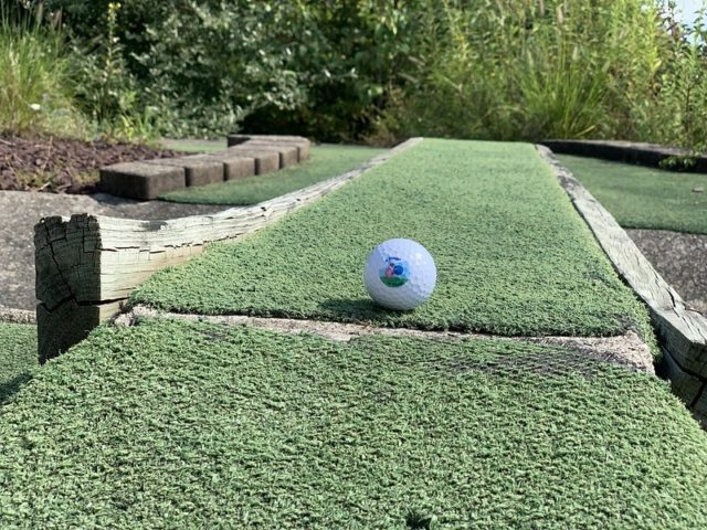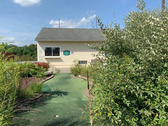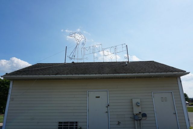 While I can’t tell you the history of Liber-Tee, I can tell you that it was a classic Harris Miniature Golf Course without too many extra frills. In my opinion, its coolest feature was the large Mini Golf lit sign on the top of the clubhouse, meant to be seen from the highway. And I can also tell you that the course is currently inhabited by a large groundhog who we had a brief encounter with.
