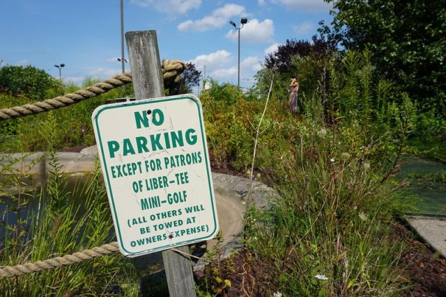 There’s a certain irony that the now defunct Liber-Tee Mini Golf course shares the same parking lot with the hotel where I had my Senior Prom in high school. Whenever I go back to visit the Lehigh Valley area in Pennsylvania, I am flooded with memories from my youth and teens. And while I remember many a round at the nearby Putt U, I actually never even knew about or played Liber-Tee previous to our visit in its current defunct state.