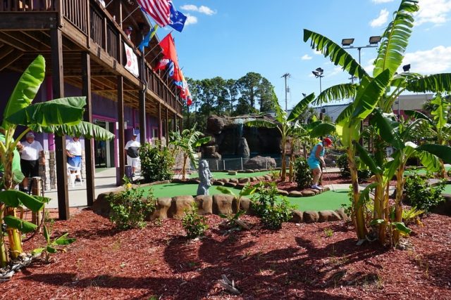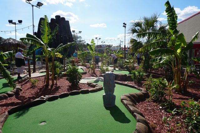 - Arcade/clubhouse includes live tropical birds. This is a trademark feature of all of the courses operated by Bob Detweiler, founder of the USPMGA. The other courses are Hawaiian Rumble and Hawaiian Village.