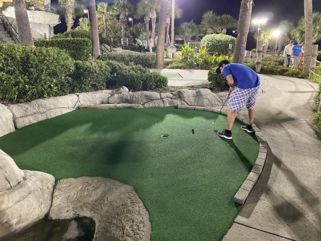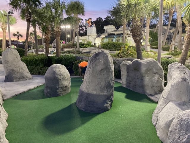 Hole-in-One – In addition to this course being home to one of the best rounds of mini golf I’ve ever played, it truly stands out in the crowded miniature golf landscape of Myrtle Beach. The palm trees and pirate ships are not uncommon but the animatronic vignettes throughout the course, including in the caves, give it an extra level of adventure. The lighting at night adds another layer of specialness. I’ve played countless pirate-themed courses but this is the first one that felt truly special. I’m most certainly returning to this course next time I’m through Myrtle Beach.