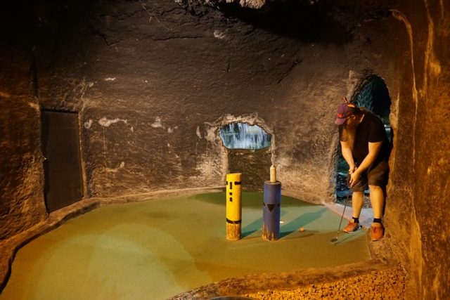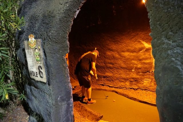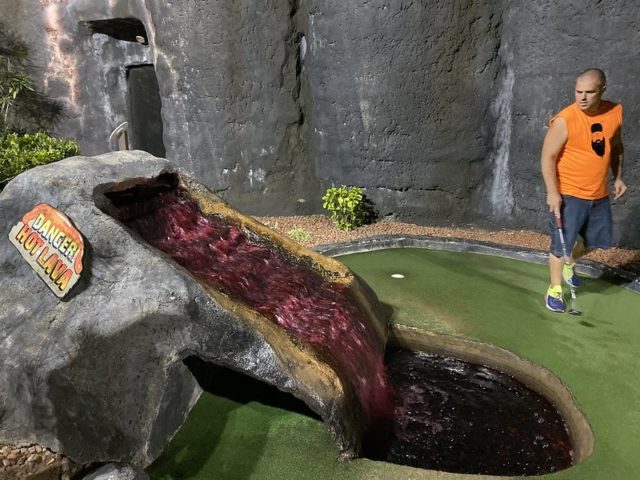 - Two 18-hole courses. Outdoors = Pele’s Revenge. Indoor = Lava Louie’s. Both Par 36