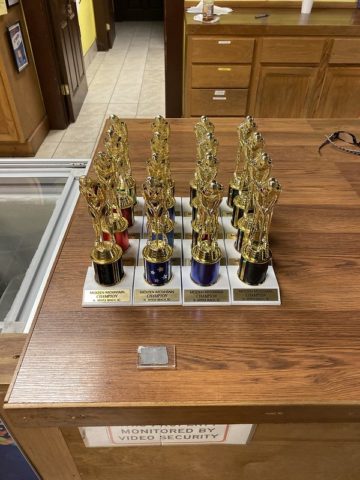 - Trophies and mischief cards for sale in the clubhouse along with light concessions
