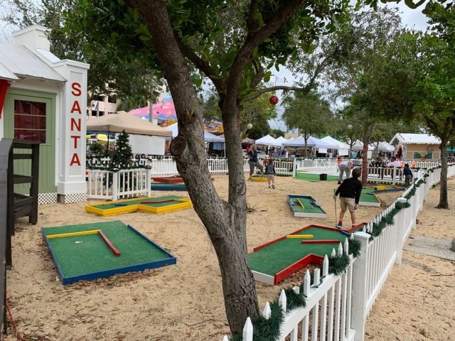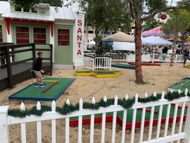 Every year, downtown Delray Beach, FL lights up a giant tree alongside holiday vendors and activities at Old School square, in the heart of downtown. One of those activities includes a free 9-hole pop-up mini golf course. And while the 2020 version of mini golf as part of the holiday activities is canceled, you can most likely expect it back in 2021. That being said, we’d like to point you to Holiday Mini Golf at Puttn’ Around, just around the corner in downtown Delray Beach, which is happening the entire month of December.