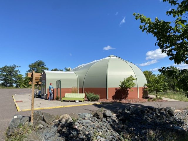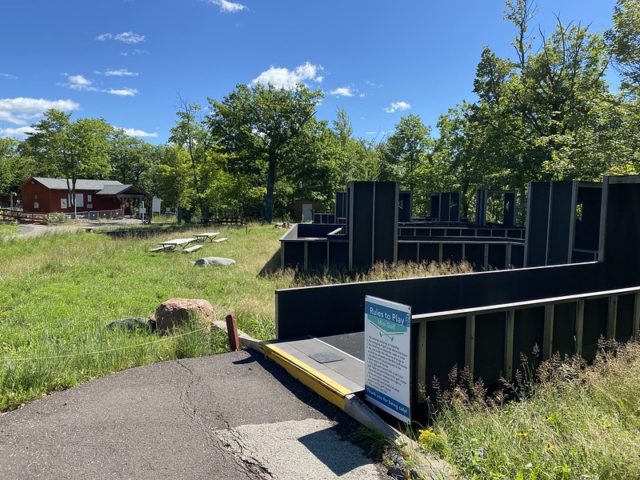 In my younger years, I was fond of downhill skiing so I always thought of Spirit Mountain when I traveled to and through Duluth. It sits just above the city overlooking the Great Lake Superior. As we began our adventures in the world of mini golf, we caught wind of a unique course having been designed by Dave Salmela & built on the resort premises in their Adventure Park in 2011 to create a non-snow season entertainment option. Our travels finally took us to the park in 2020 during the warmer months but the park was not operational due to COVID. Fortunately, a hiking trail offered a path inside the premises.