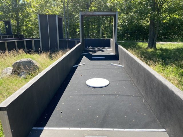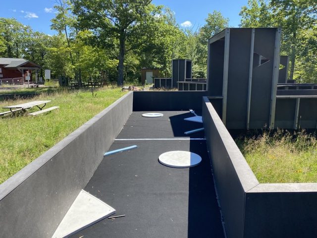 The single direction maze layout of the 9-hole course was indeed unique. Not sure if I’ve seen anything like it, for better or worse. A few nods to the winter were engraved on the walls to add some flair to what was otherwise a relatively no-frills course. The narrow pathways coupled with short wood “obstacles” and transitions between holes aren’t visually pleasing and offer little in the way of gameplay. While I wouldn’t go as far as calling it the “worst miniature golf ever“, I don’t feel compelled to go back to play this course anytime soon. The surrounding area is beautiful so if you find yourself in the area, this worth considering.