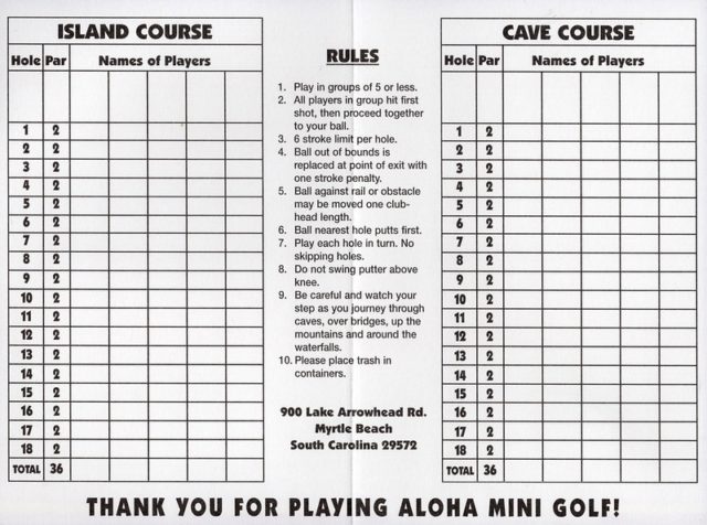 - Arcade/clubhouse includes live tropical birds. This is a trademark feature of all of the courses operated by Bob Detweiler, founder of the USPMGA. The other courses are Hawaiian Rumble and Hawaiian Village.