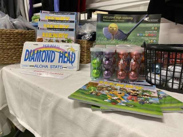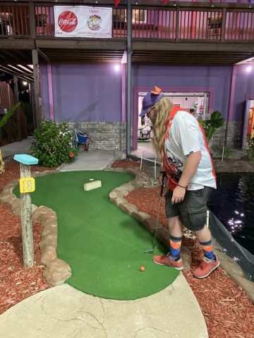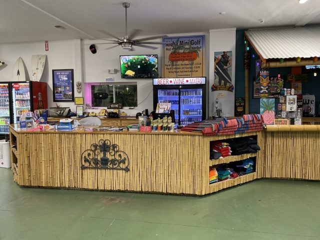 - Arcade and gift shop that includes a number of mini golf goods like trophies, ball, coloring books and more