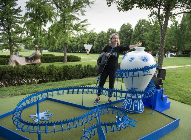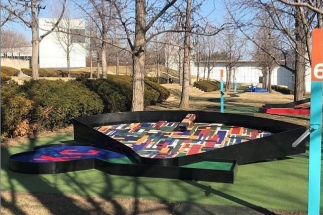 Zoomy – Inspired by: Mark Di Suvero, Rumi, 1991. Designer: Brett PaytonNelson-Atkins Campus – Inspired by: Grounds of the Nelson-Atkins. Designer: Lee ErnstThe Mischievous Dragon – Inspired by: Chinese, Vase, 1426-1435. Designer: Kelly Batcheller-MummeyOp-Art – Inspired by: Luis Tomasello, Chromoplastic Mural, 2011. Designer: Andrew WilsonHeaven Putt Hell – Inspired by: Marsden Hartley, Himmel, circa 1914-1915. Designer: Parker StoryPedal! – Inspired by: Evelyn Hofer, Girl with Bicycle, Dublin, 1966. Designers: Jacob Hodson & Jesse CrupperJawbreaker Machine – Inspired by: Wayne Thiebaud, Jawbreaker Machine, 1963. Designer: Lisa Campbell ErnstRose with Gray – Inspired by: Vasily Kandinsky, Rose with Gray, 1924. Designer: John GlessnerA new hole for 2021 year celebrating Negro Leagues Baseball Museum inspired by Radcliffe Bailey’s “Mound Magician.”