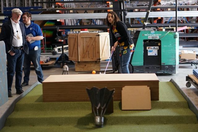 Fast forward to April 2019, when the holes were finally coming to life in the shop at A to Z Theatrical Supply and Service. We made another trip down to test play the works in progress and give some input before on-site installation. The course was open all of summer 2020 and was a huge success.
