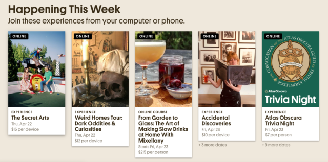 We had a total blast, thanks for hosting us Eric! The two of us have enjoyed many interesting and intellectually stimulating virtual events hosted by Atlas Obscura during the pandemic. It was a thrill to be in the company of dark oddities, accidental discoveries, slow drinks, and our favorite weekly trivia events.